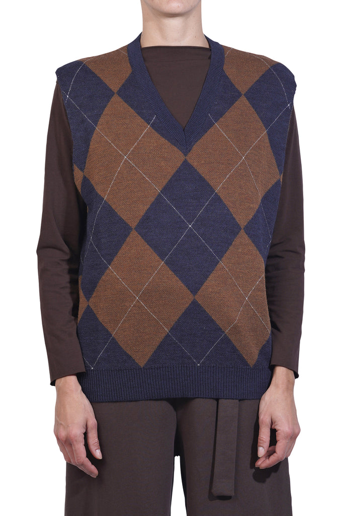 Product code: LF79 GILET OVER BLU/CAMMELLO