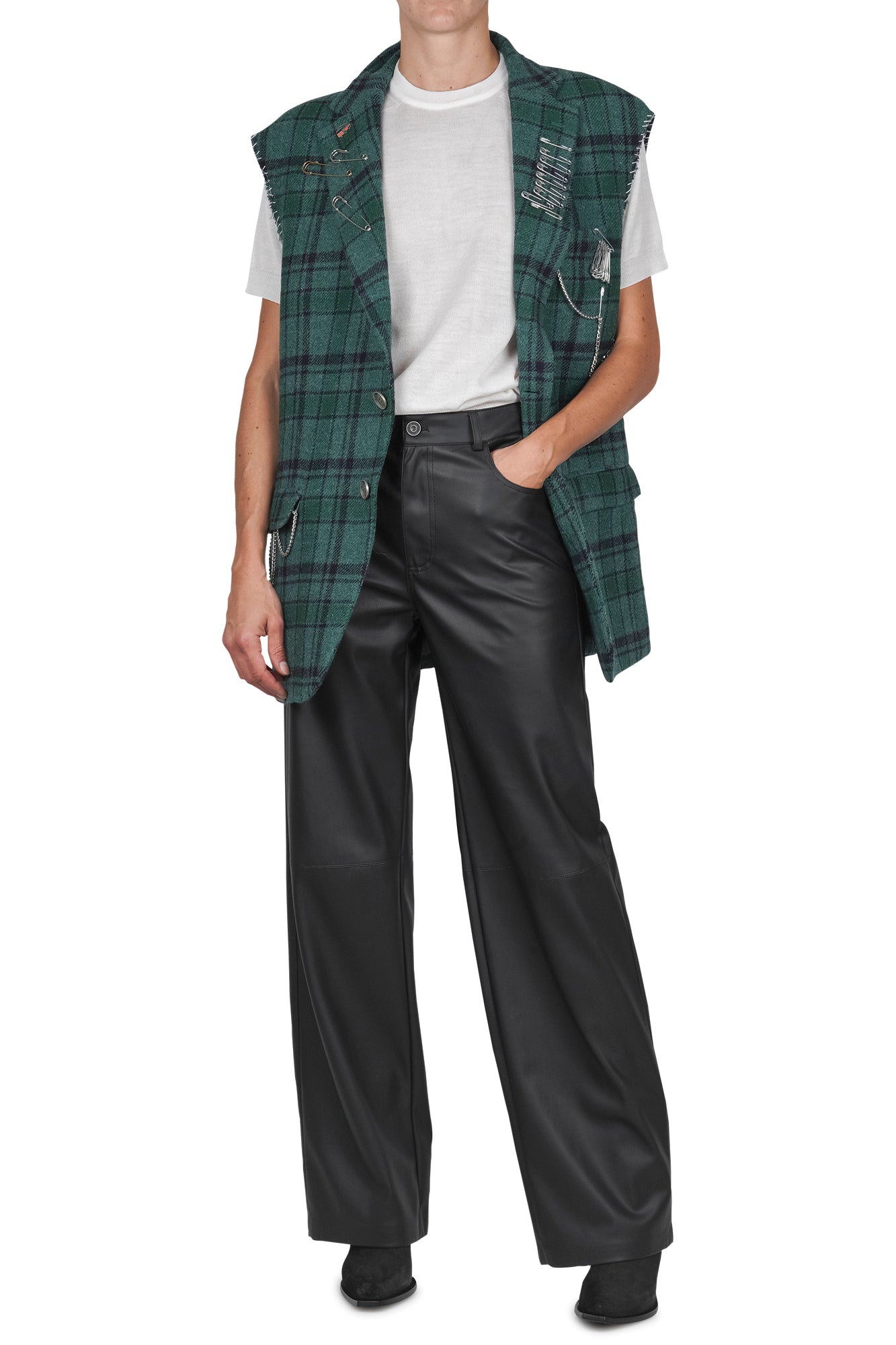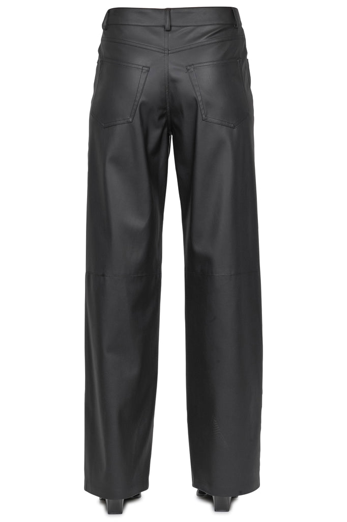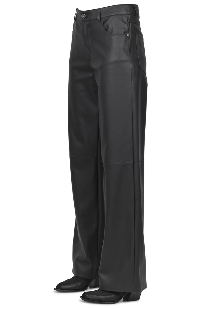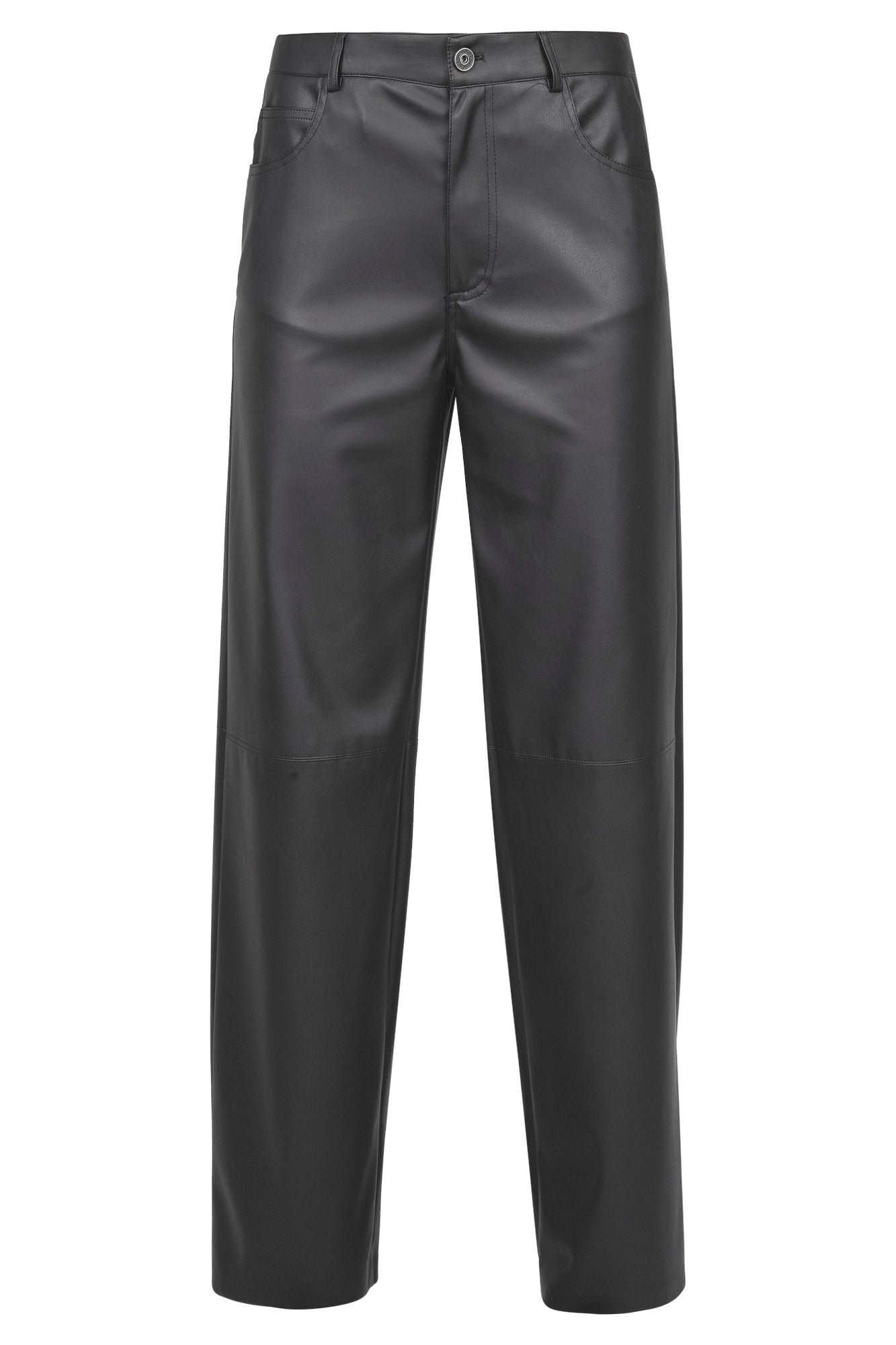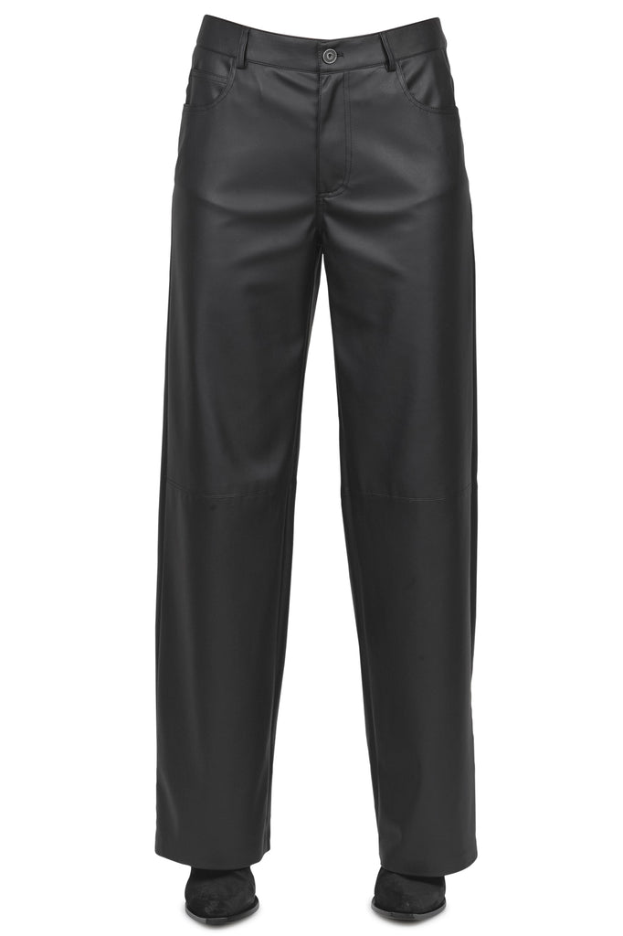 Pantalone ampio in eco-pelle. Passanti per cintura. Chiusura frontale con bottone logato e zip. Cinque tasche. Gamba dritta. Larghezza fondo: 25 cm. Composizione tessuto 1: 100% poliuretanica. Composizione tessuto 2: 100% poliestere. Vestibilità: regolare. Made in Italy. La modella indossa la taglia 40 ed è alta 175 cm. Amiamo questi pantaloni perchè sono super cool.
