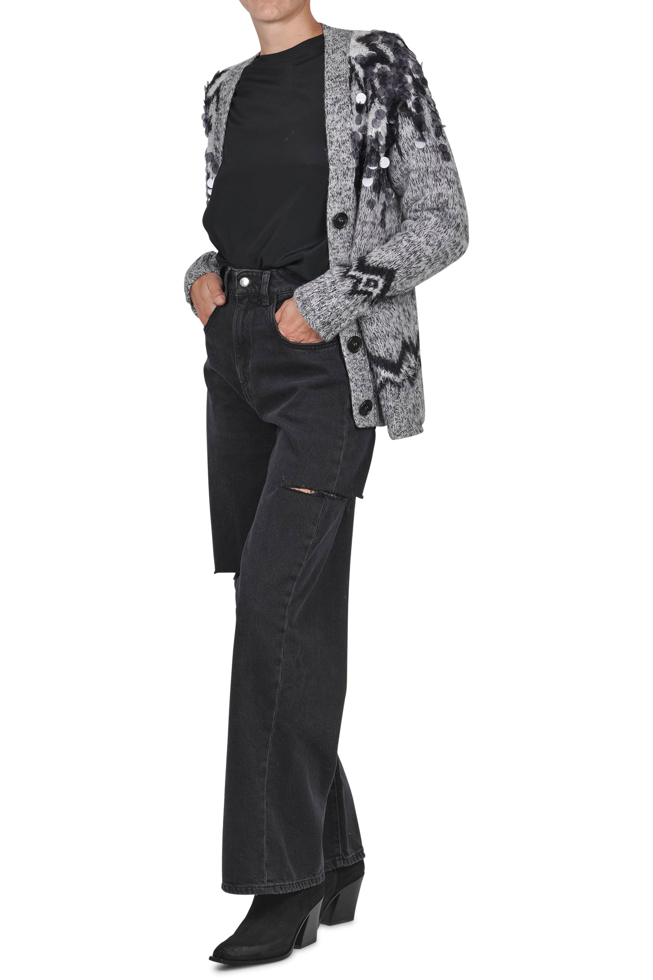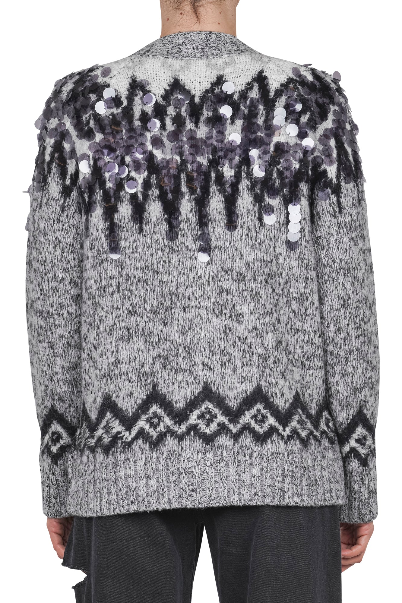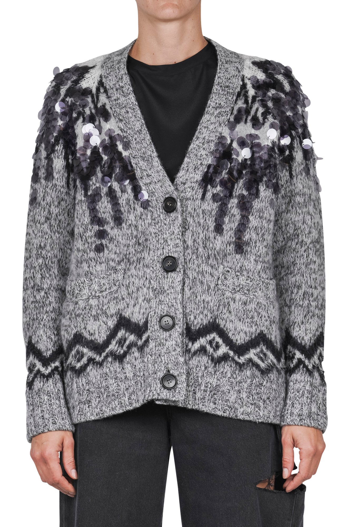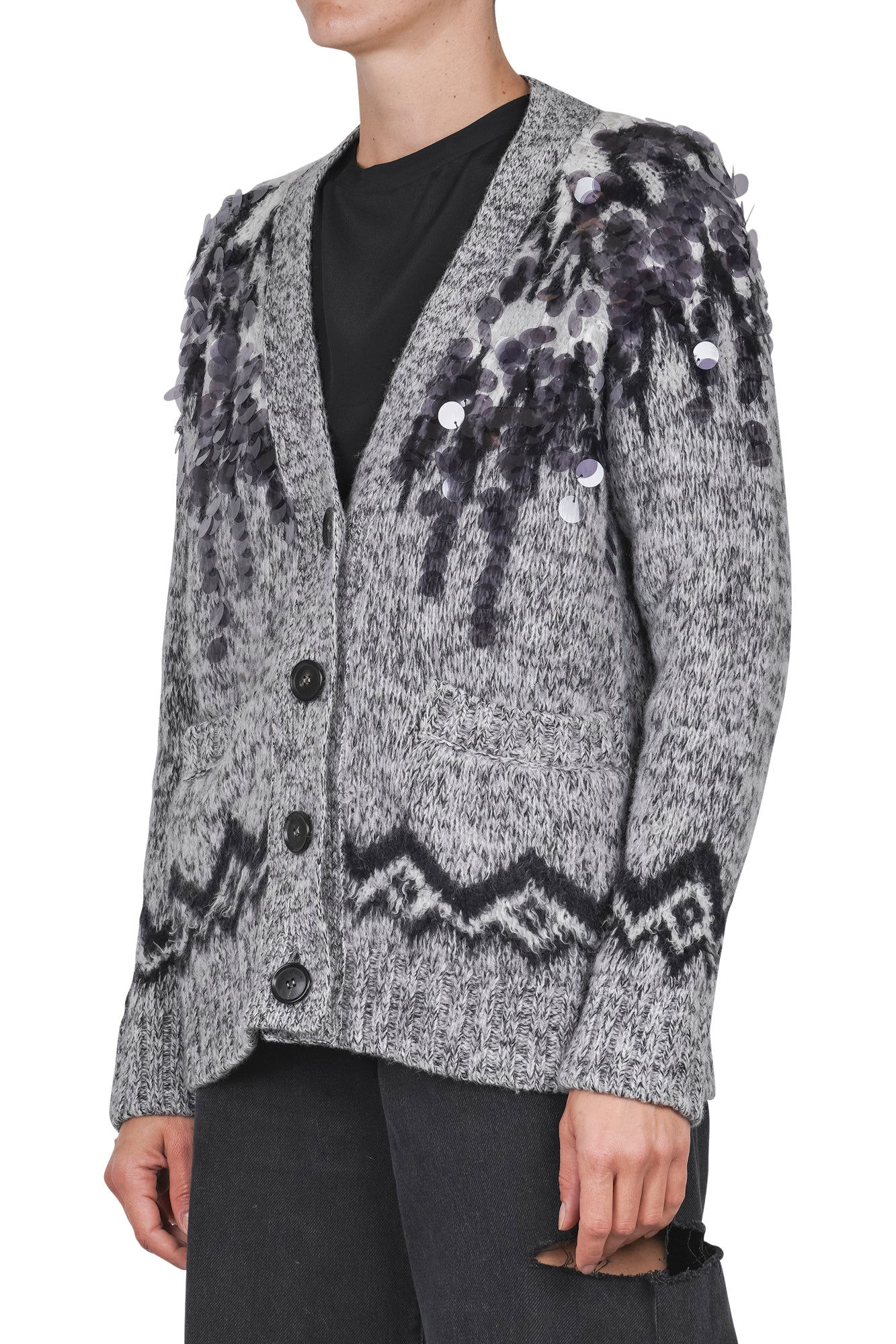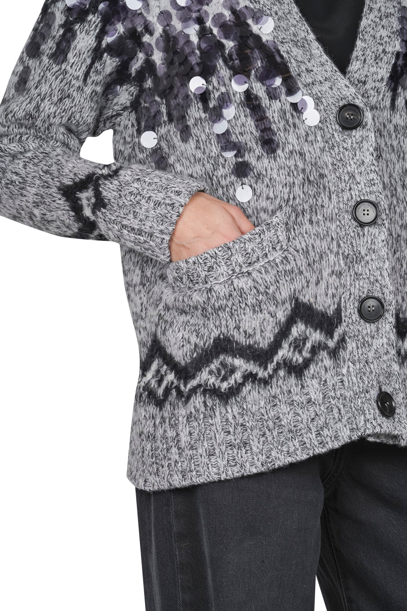 Cardigan in lana con maxi paillettes.