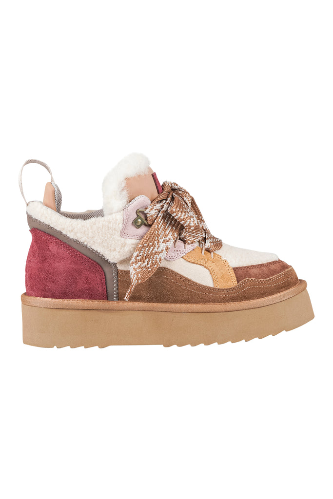 Stivaletti platform Moon 9 in pelle e tessuto Cipria
