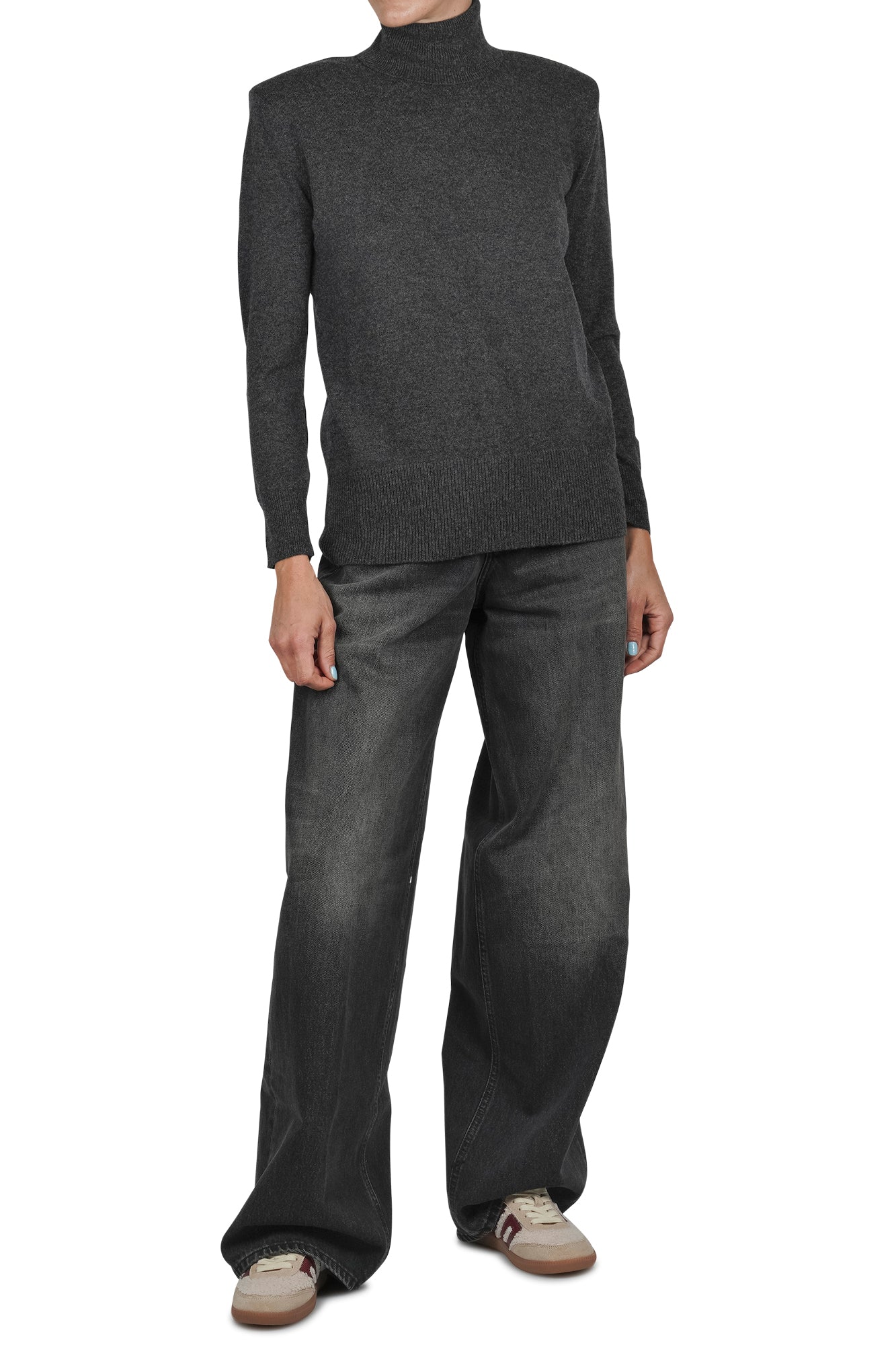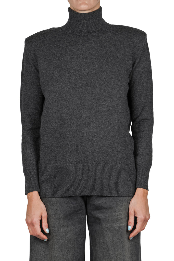 Maglia Dolcevita con spalle imbottite. Collo alto. Spalle leggermente scivolate imbottite. Maniche lunghe. Collo, polsini e fondo a costine. Composizione tessuto: 90% lana, 10% cashmere. Vestibilità: ampia. Made in Italy. La modella indossa una taglia 40 ed è alta 175cm. Un dolcevita che tutti dovrebbero avere nell'armadio.