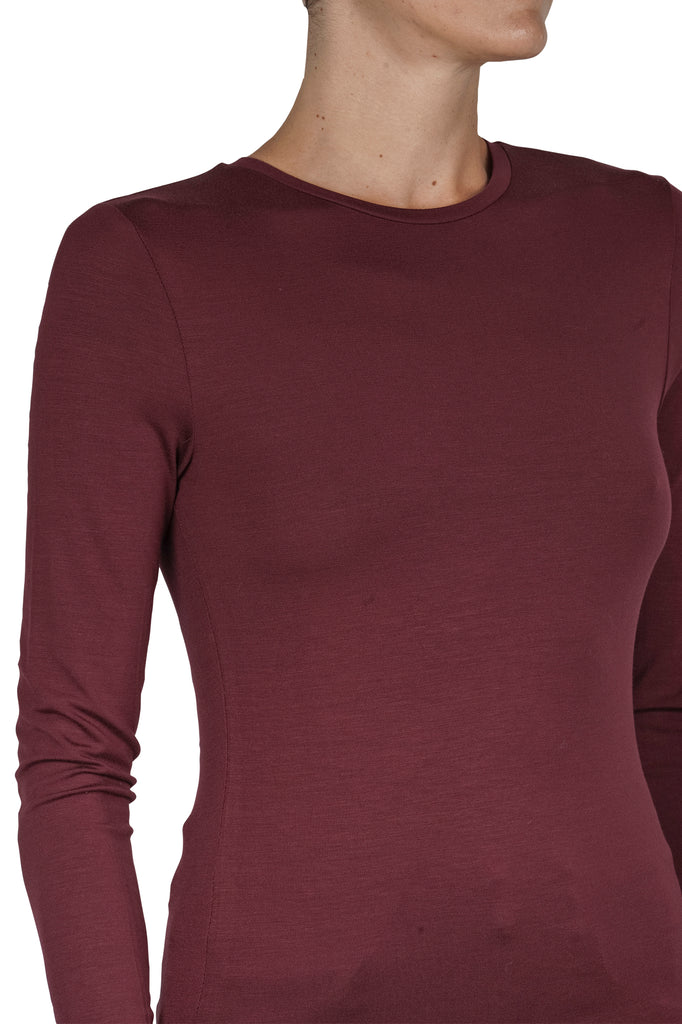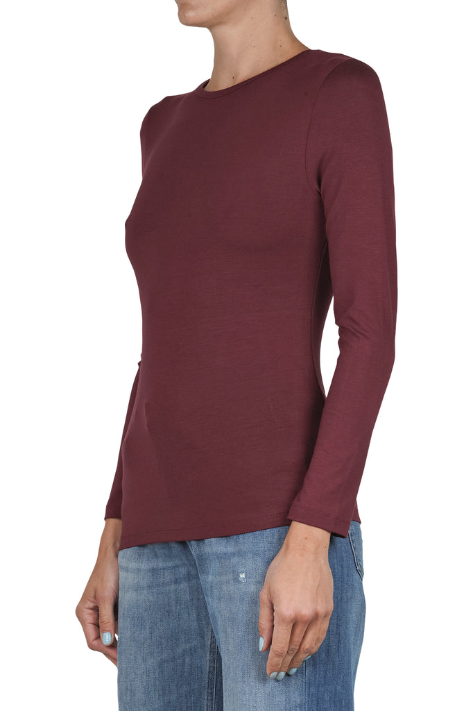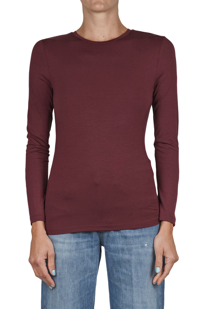 Tshirt in jersey. Girocollo. Maniche lunghe. Taglio dritto. Composizione tessuto: 92% viscosa, 8% elastane. Vestibilità: regolare. Made in Italy. La modella indossa la taglia 40 ed è alta 175 cm. Basic e easy, questa maglia è perfetta come sottogiacca.