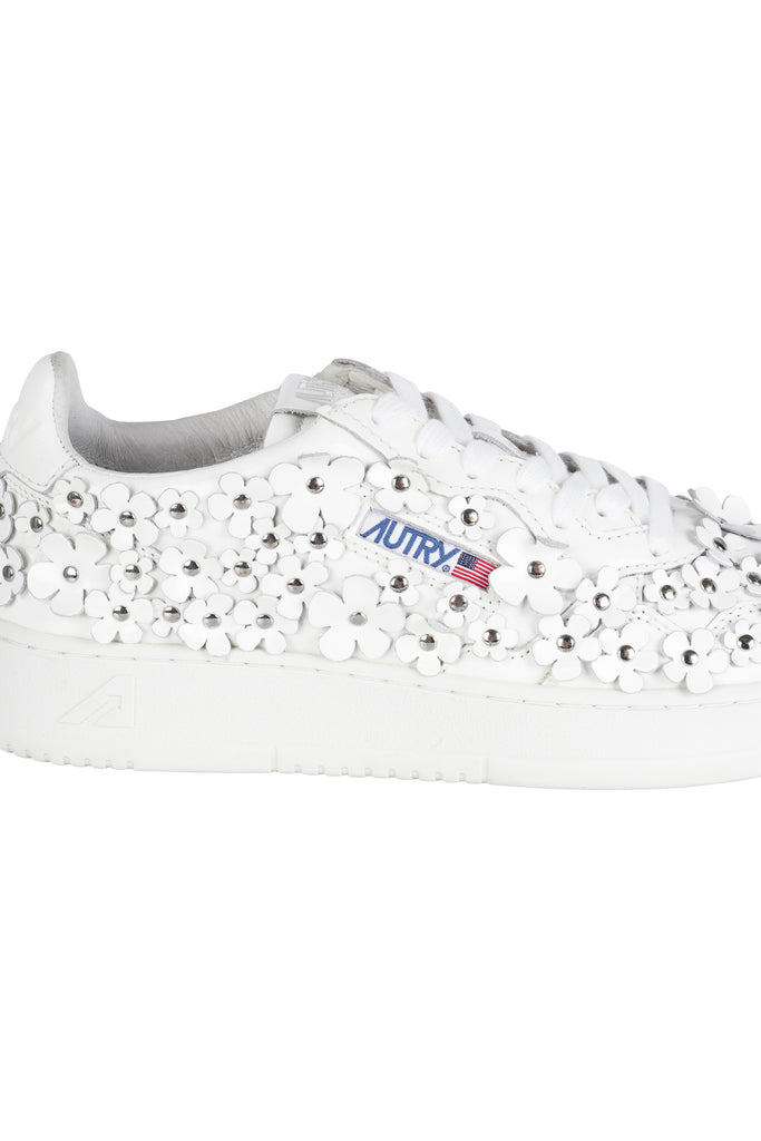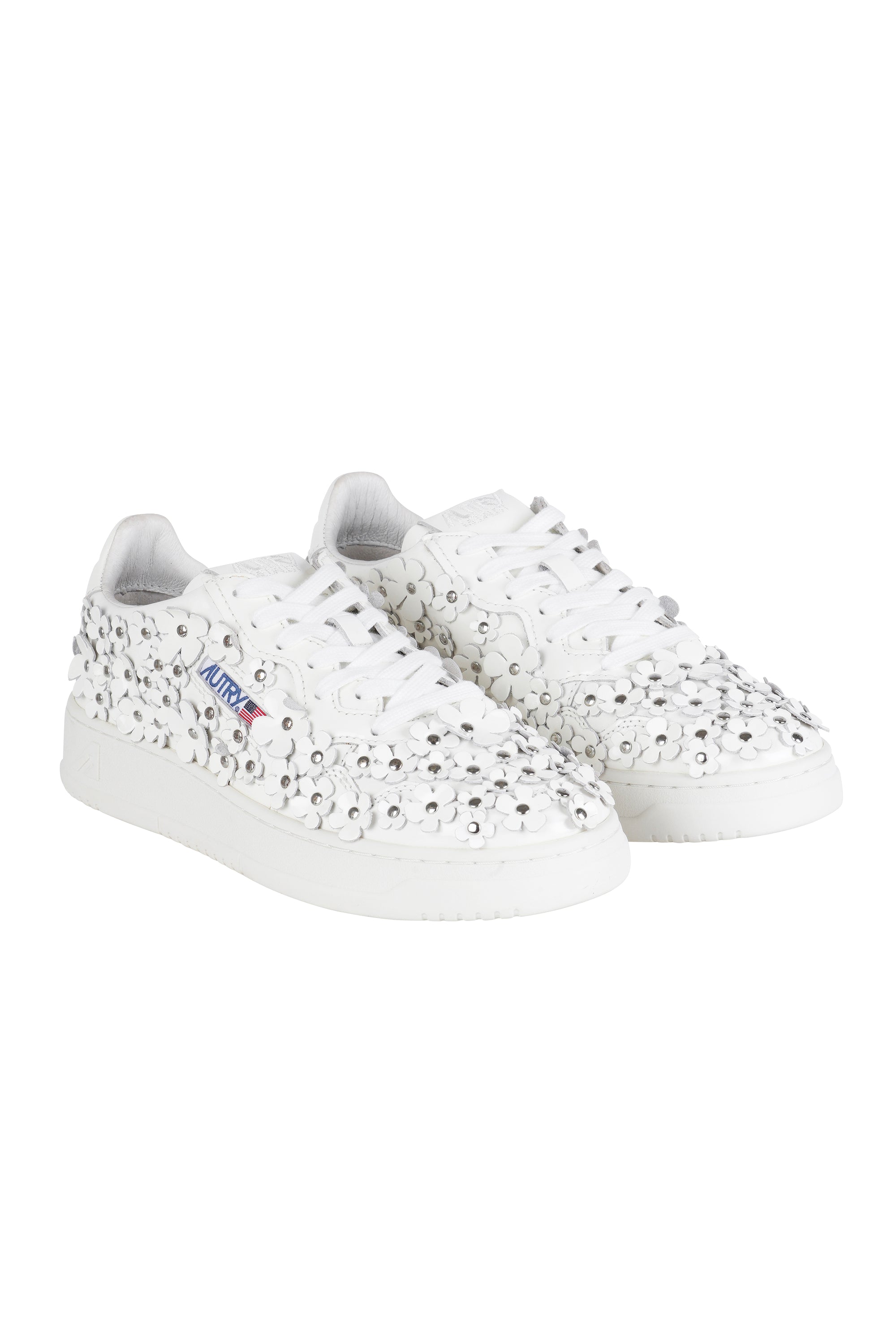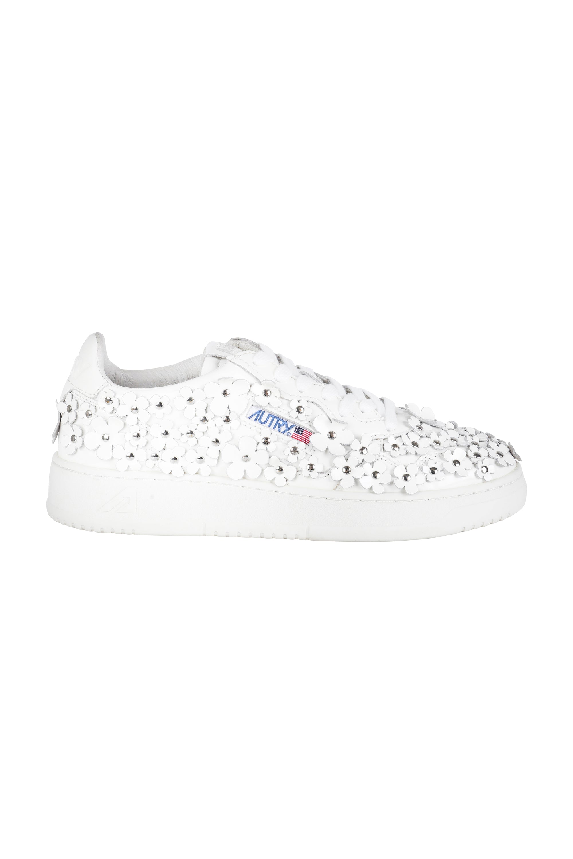Sneakers Medalist Low "Blooming". Punta tonda. Tomaia con fiorellini in rilievo in pelle verniciata. Linguetta con logo in pelle verniciata. Chiusura con sette fori e lacci piatti. Logo laterale in jacaquard. Talloncino in pelle verniciata con logo impresso. Fodera in pelle e spugna di cotone. Suoletta in pelle. Suola in gomma. Altezza tacco: 3,5cm. Composizione: 100% pelle verniciata. Calzata: regolare.