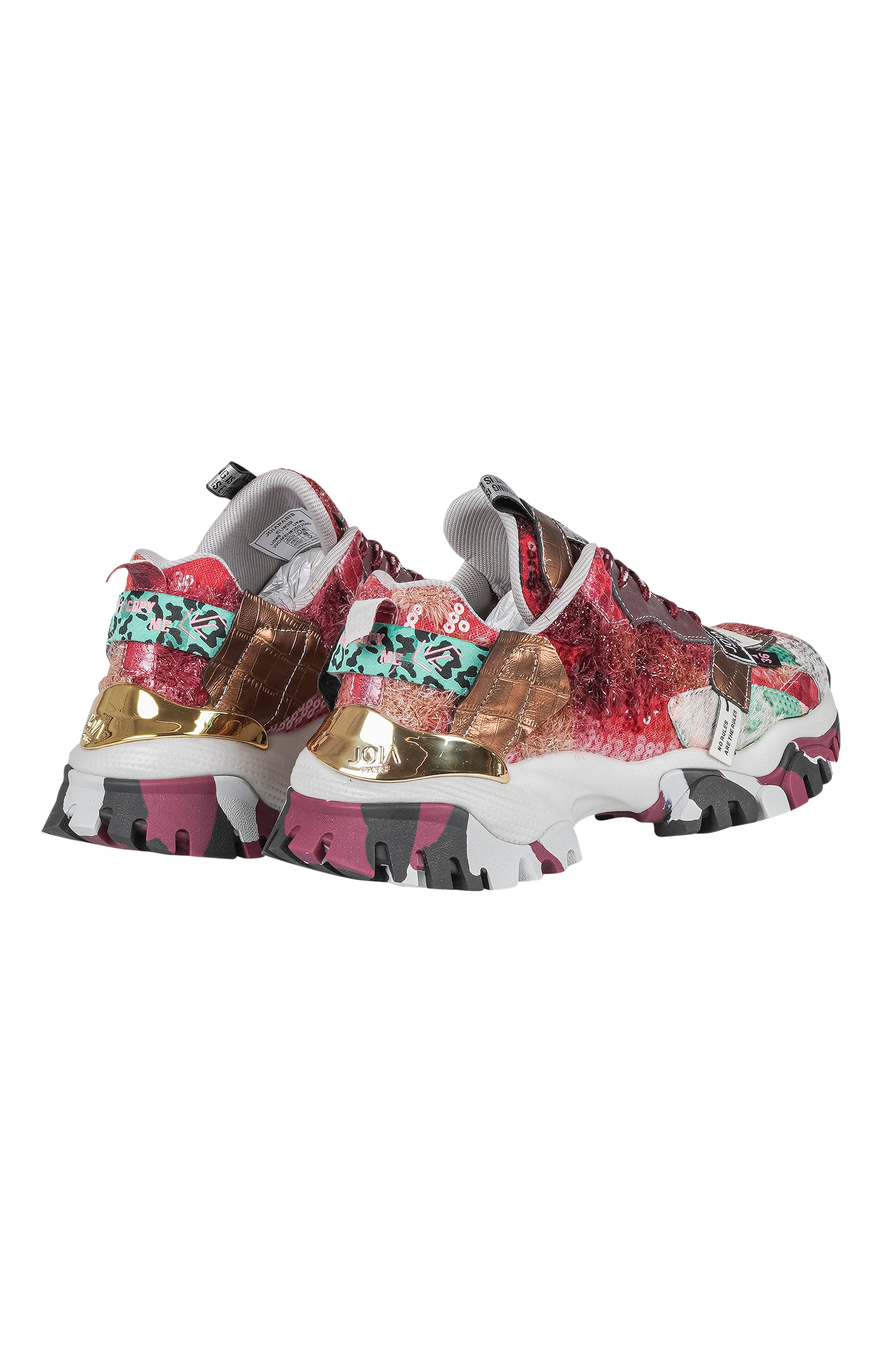 Suola in gomma multistrato con inserto effetto metallico sul retro.