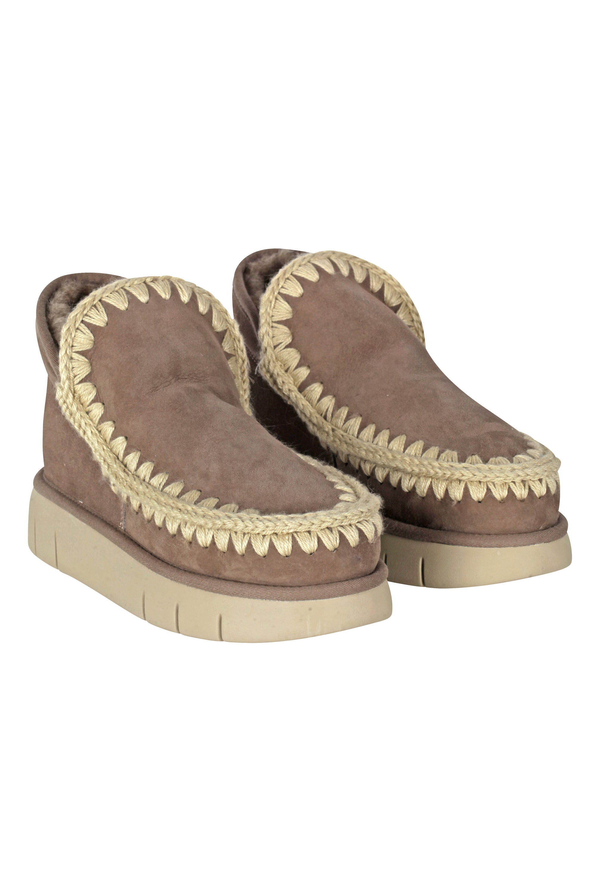 Stivaletto Eskimo Bounce Sneaker in pelle di montone. Punta tonda. Cuciture in lana all'uncinetto. Tag con logo applicato sul retro. Fodera in pelliccia. Soletta in pelliccia. Suola in gomma. Altezza gambale: 11 cm. Altezza tacco: 3 cm. Composizione: 100% pelle. Calzata: regolare.