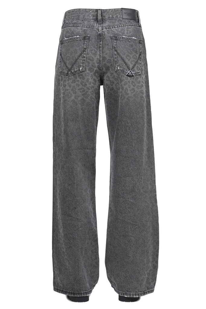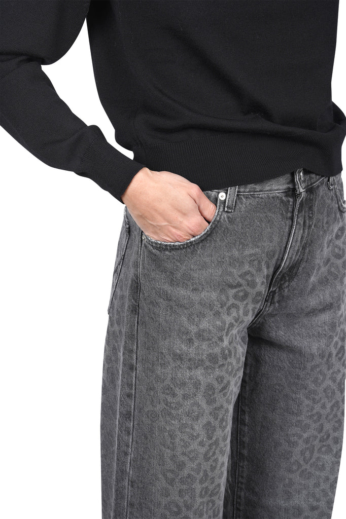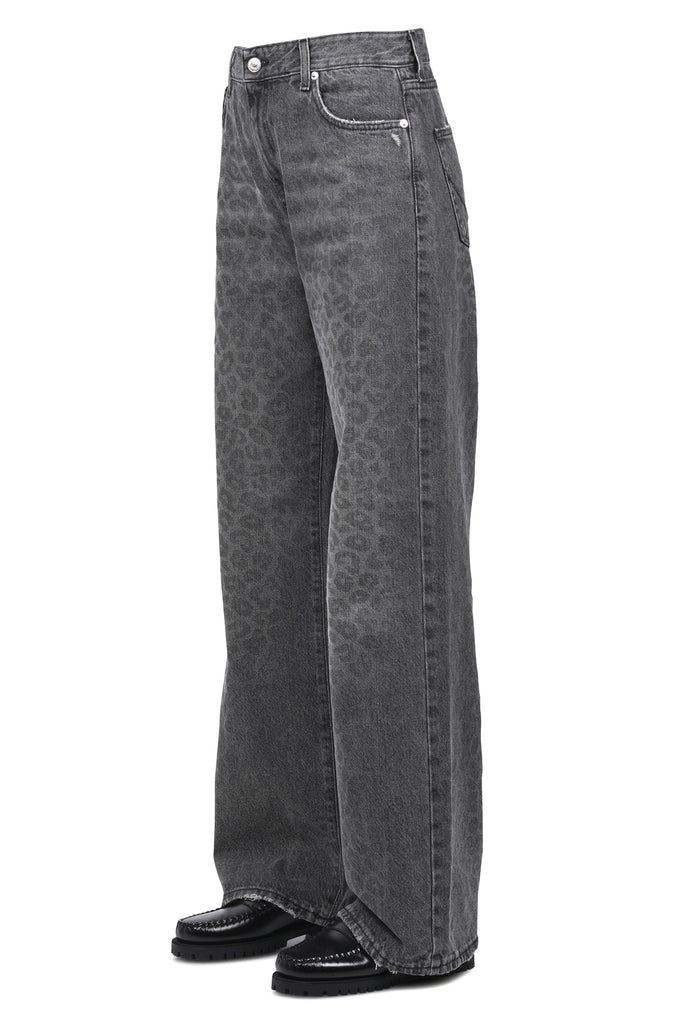 Jeans nero ampio Super Wide Leopard