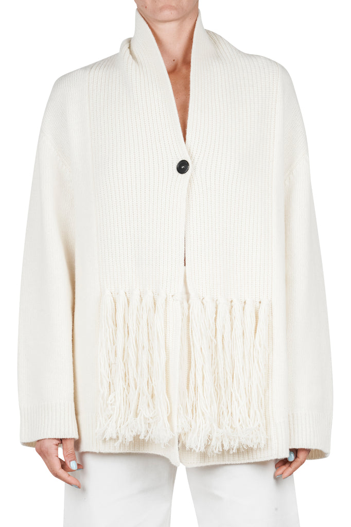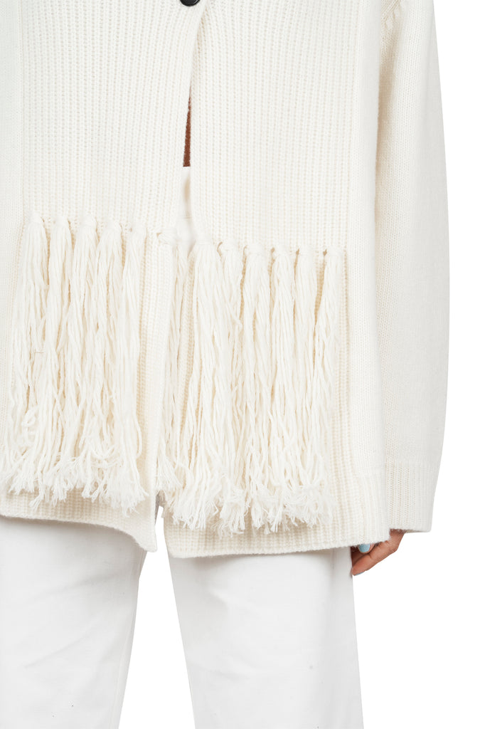 Amiamo questo cardigan perchè con le sue frangie rende i look più grintosi.