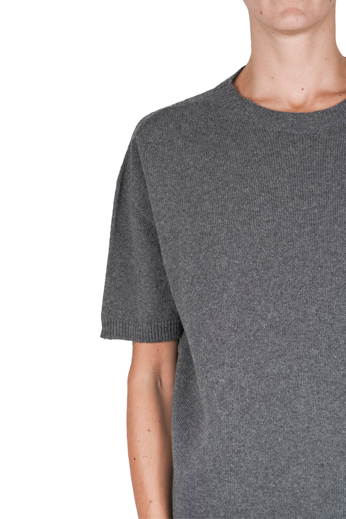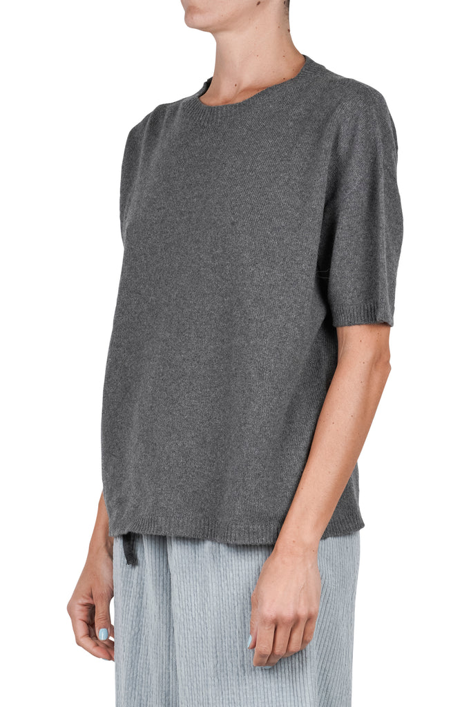 Maglia in cashmere Scollo tondo. Spalle scese. Maniche corte. Taglio dritto Profili a costine sul collo e fondo. Composizione tessuto: 100% cashmere. Vestibilità: ampia. Made in Italy. La modella indossa la taglia XS ed è alta 175 cm. Amiamo questa maglia per la sua morbidezza e versatilità.