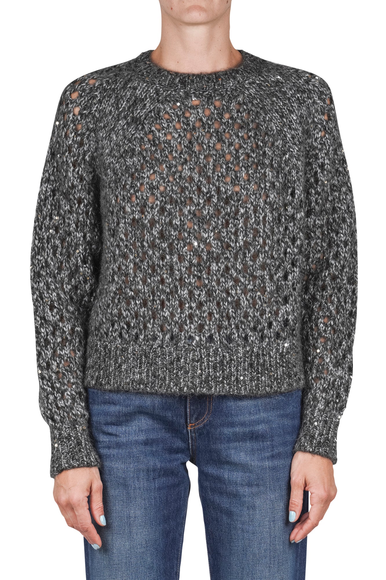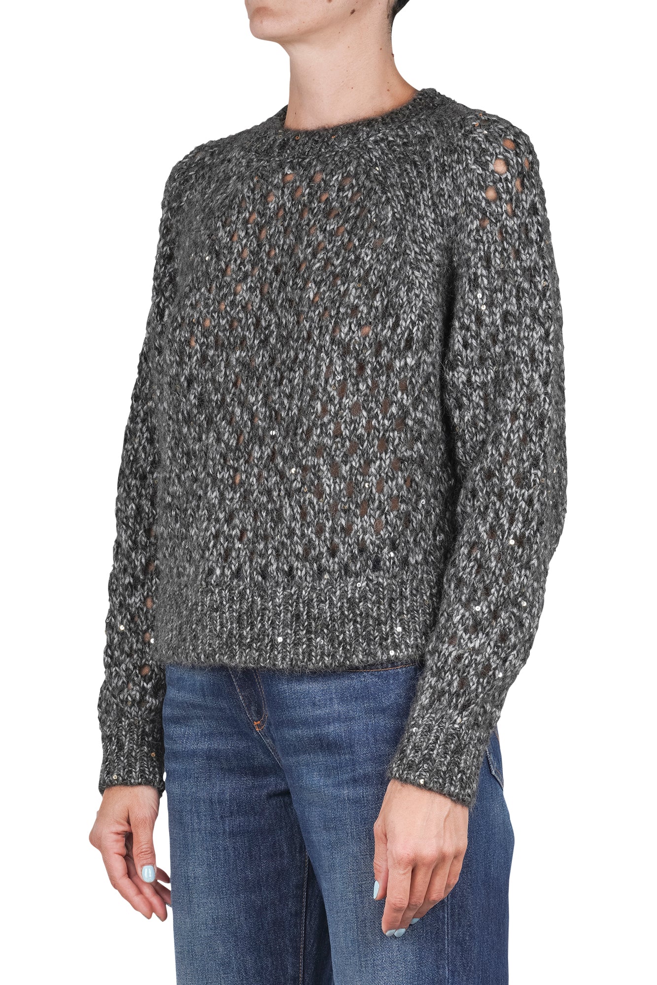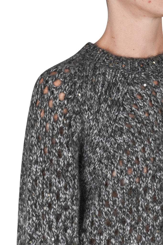 Maglia in alpaca a rete con paillettes.