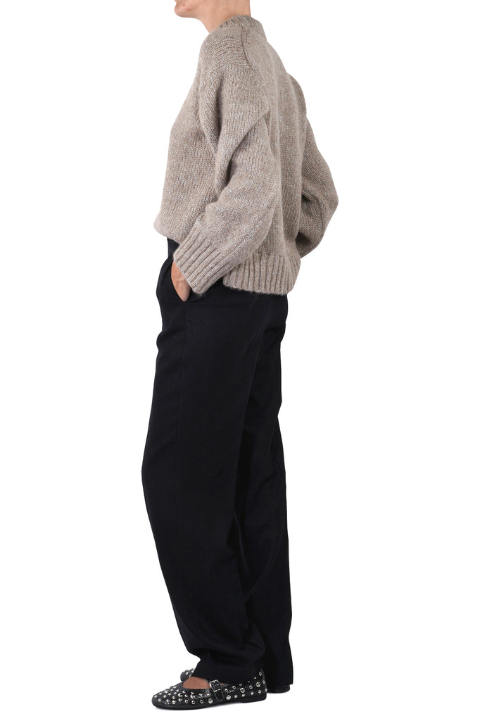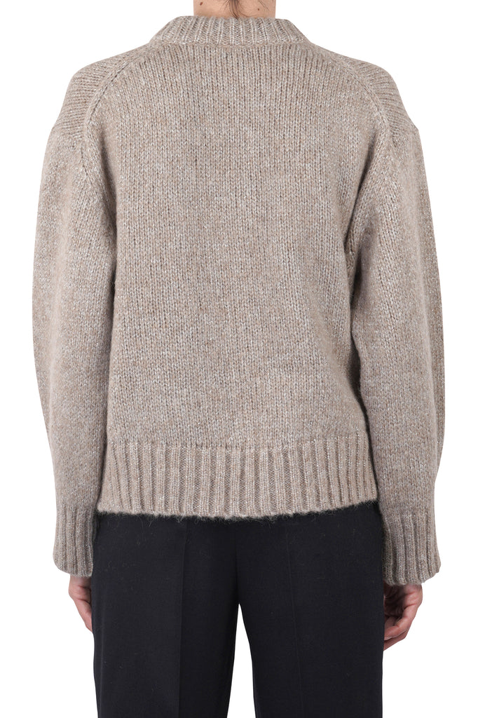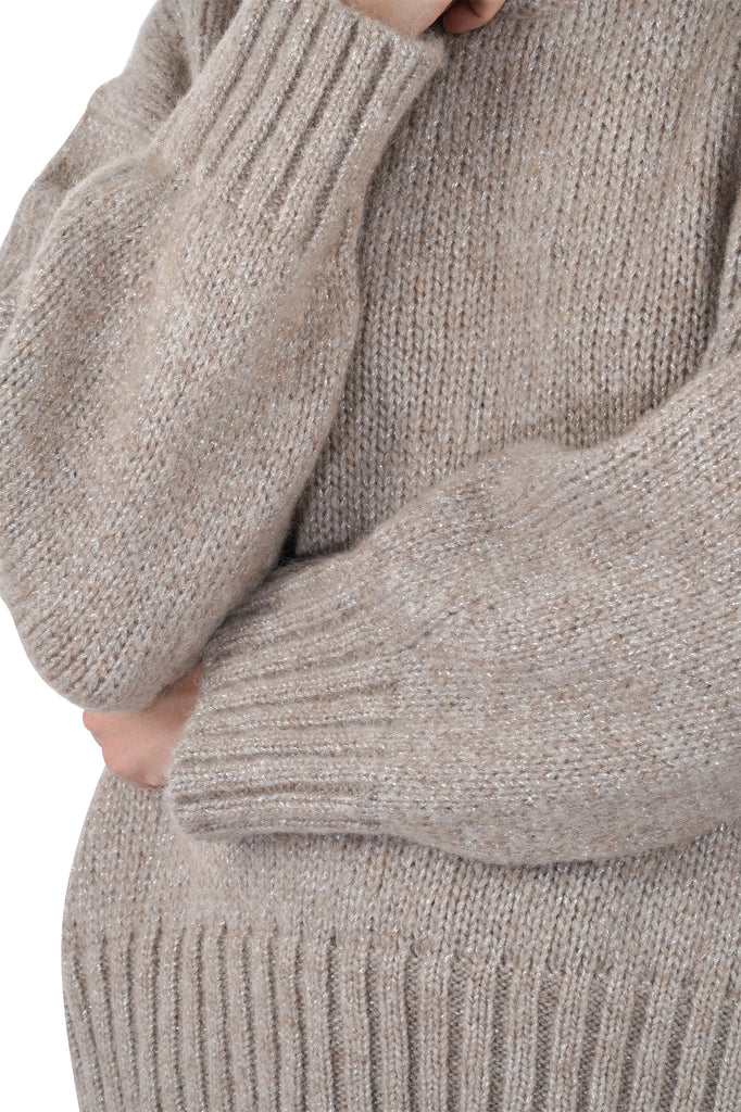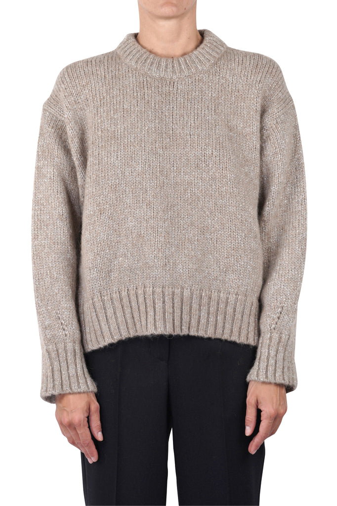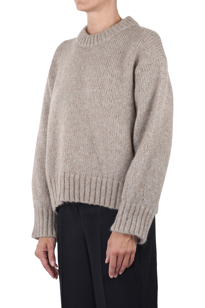Maglia in alpaca con dettagli lurex. Girocollo. Spalle scivolate. Maniche lunghe. Collo, polsini e fondo a costine. Composizione tessuto: 34% alpaca, 33% lana, 17% fibra metallica, 16% poliammide. Vestibilità: regolare. La modella indossa la taglia S ed è alta 175 cm. Amiamo questo maglione per il carattere basic e i tocchi luminosi.