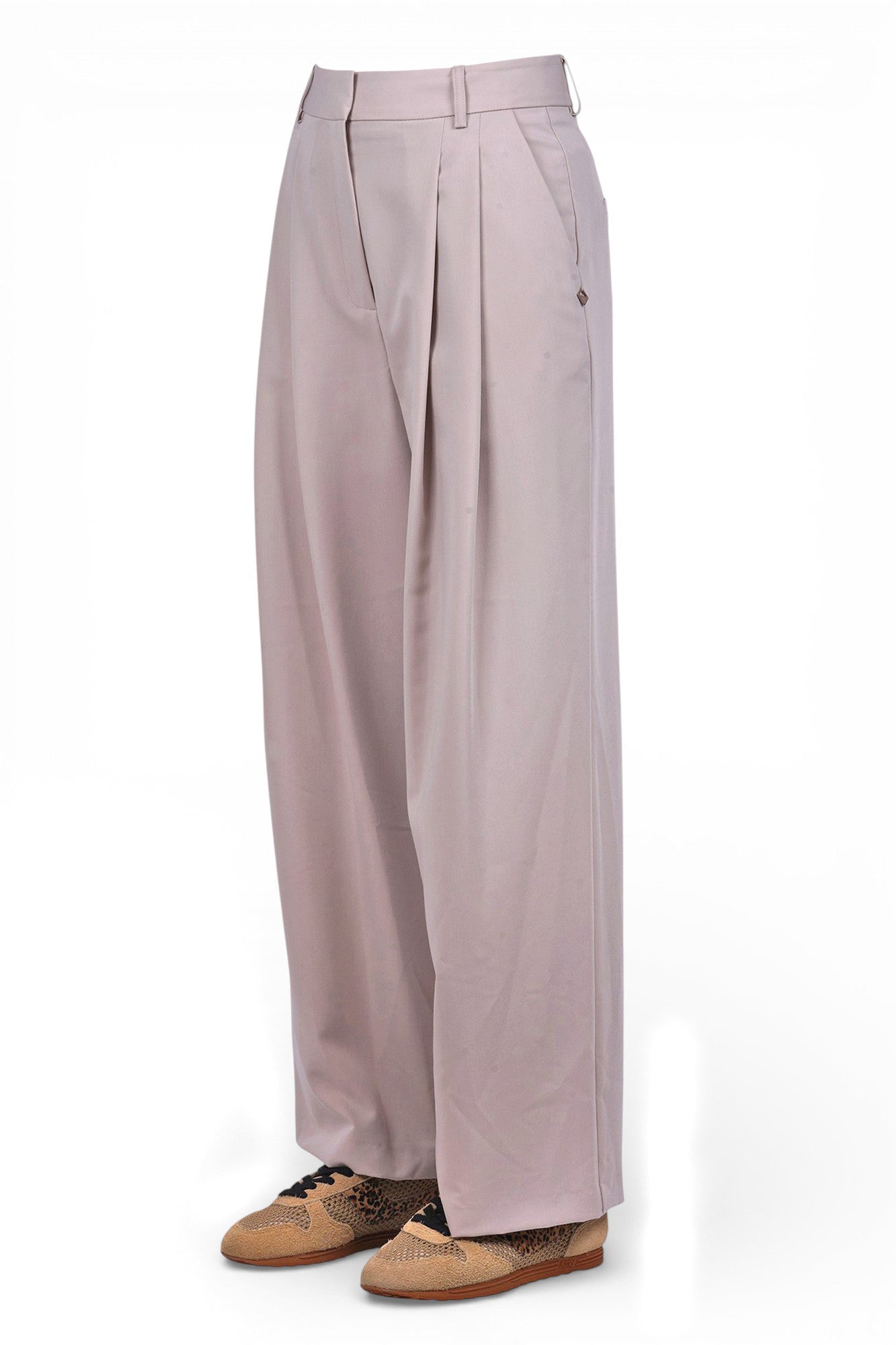 - Dettaglio di pinces sul davanti: Le pinces conferiscono al pantalone un tocco di originalità e carattere, rendendolo un capo unico nel suo genere.