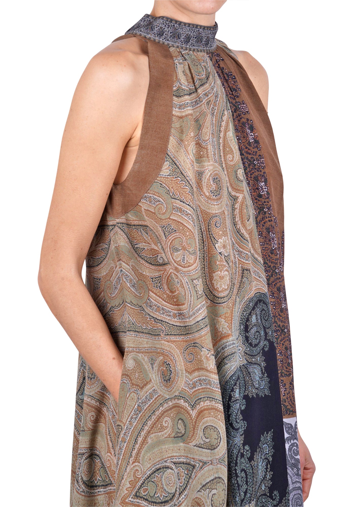 - Design esclusivo: con una fantasia patchwork unica che unisce motivi paisley e botanici, questo abito si distingue per il suo stile originale.