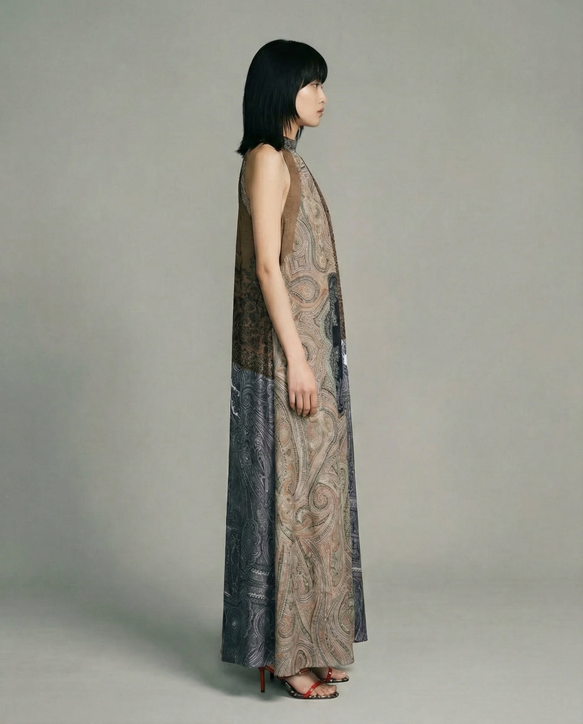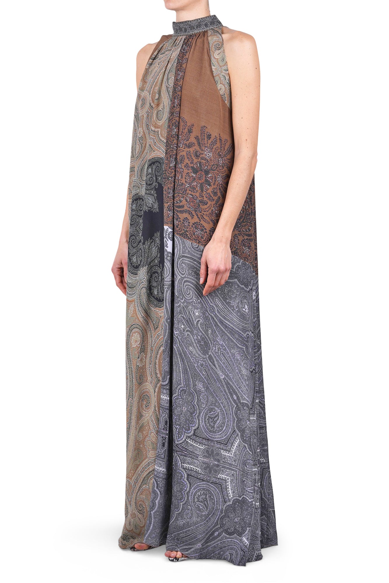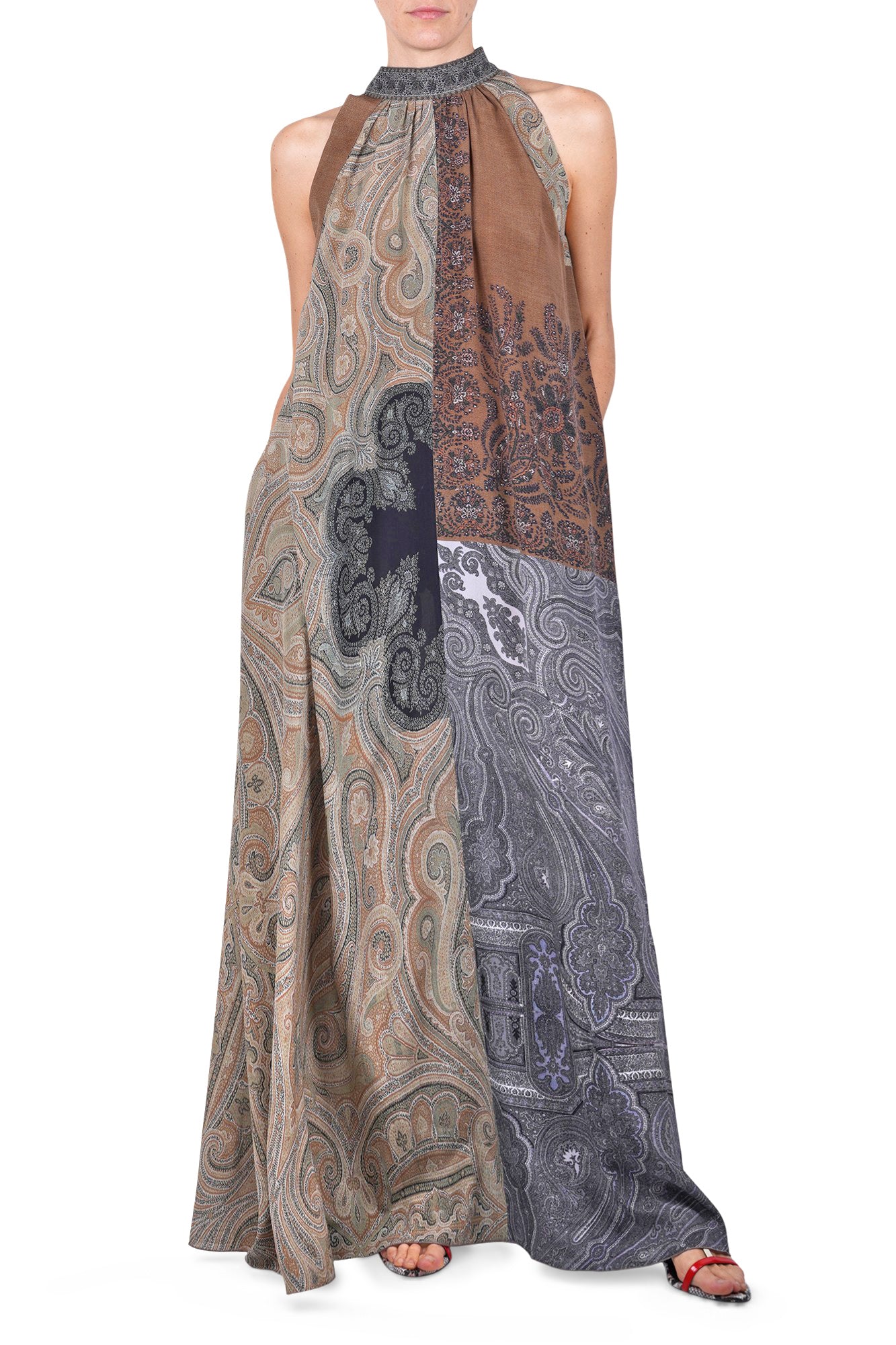 Abito lungo in seta con fantasia patchwork
