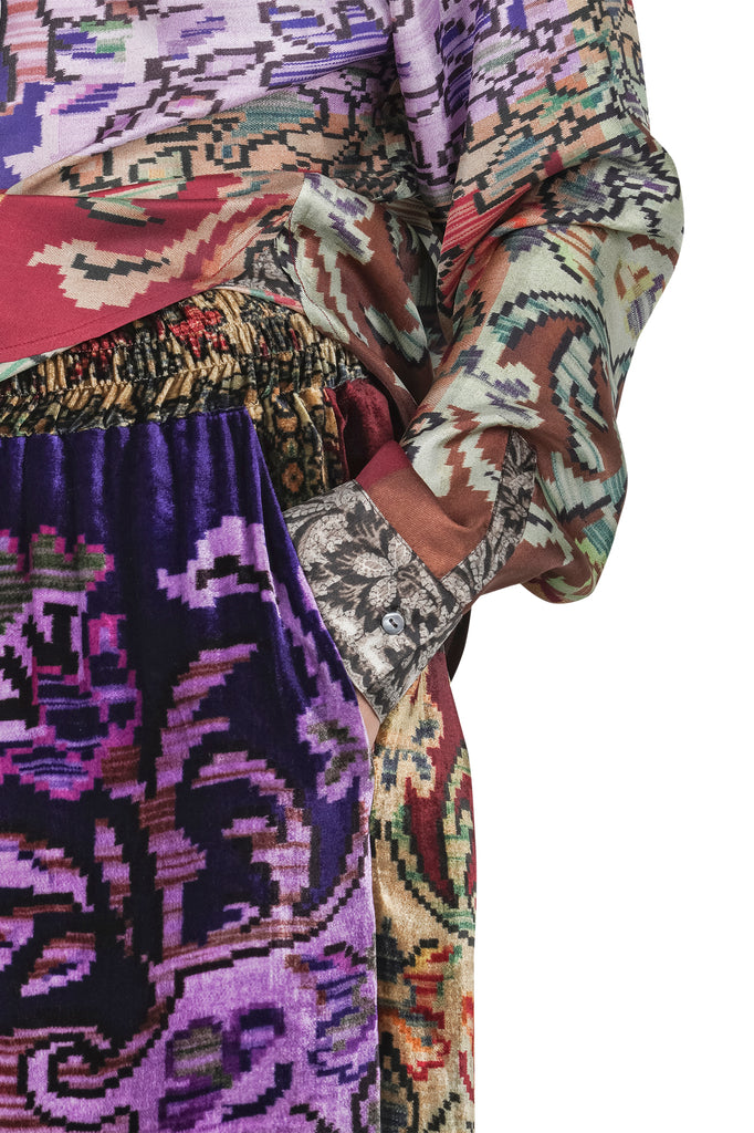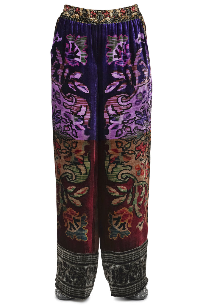 - Eleganza scenografica: I pantaloni ampi in velluto dévoré di Pierre-Louis Mascia conferiscono un tocco di eleganza e originalità al tuo look.