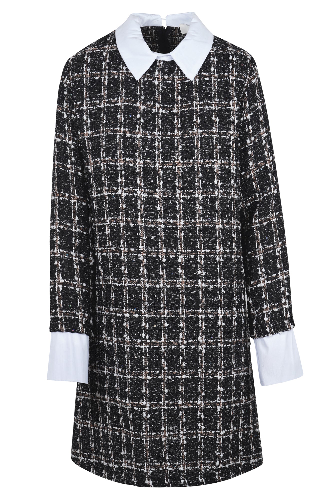 - Dettagli ricercati: Il collo a contrasto in stile Peter Pan e i polsini a contrasto creano un effetto a strati unico e sofisticato.