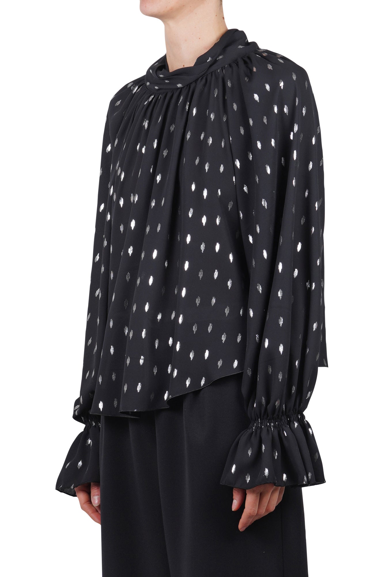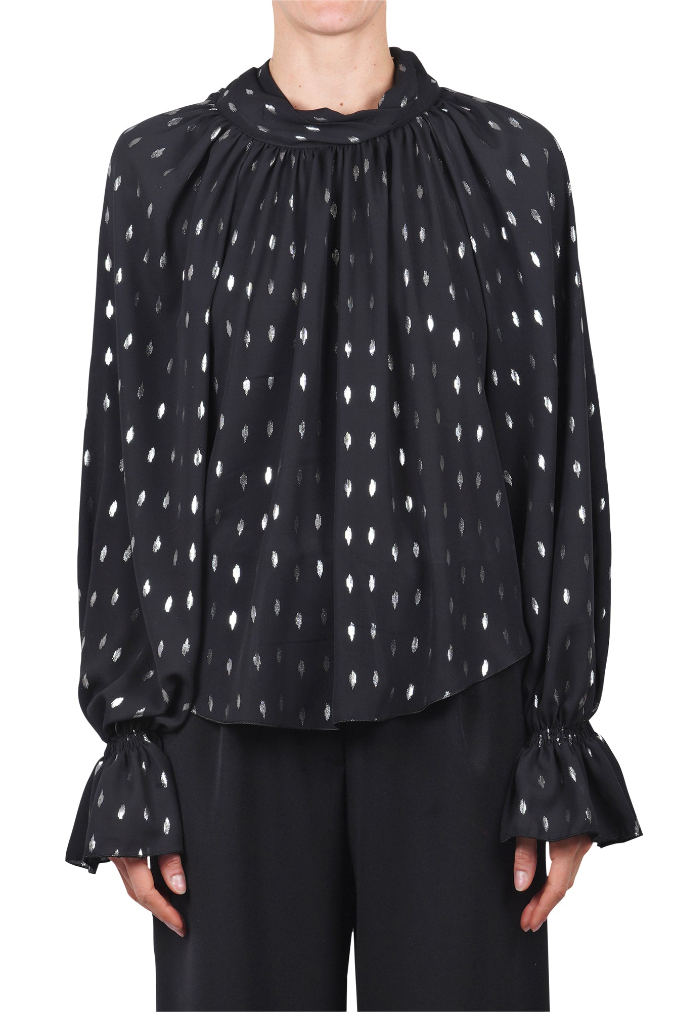 Blusa con stampa a gocce metallizzate.
