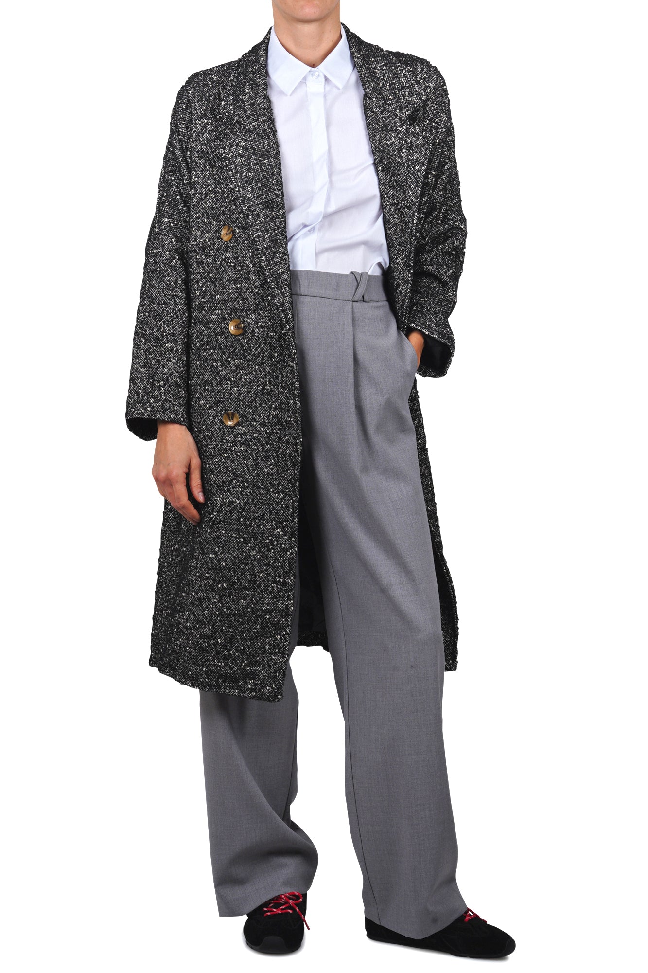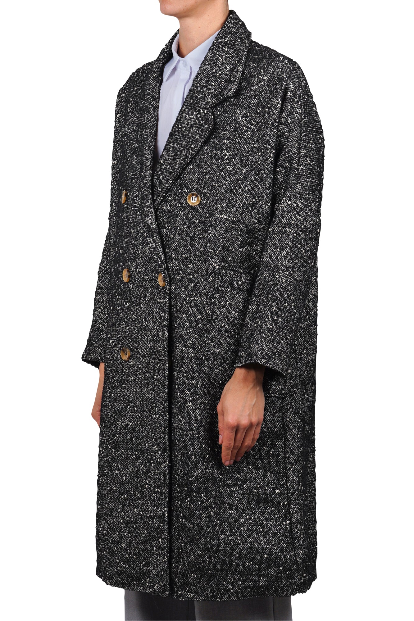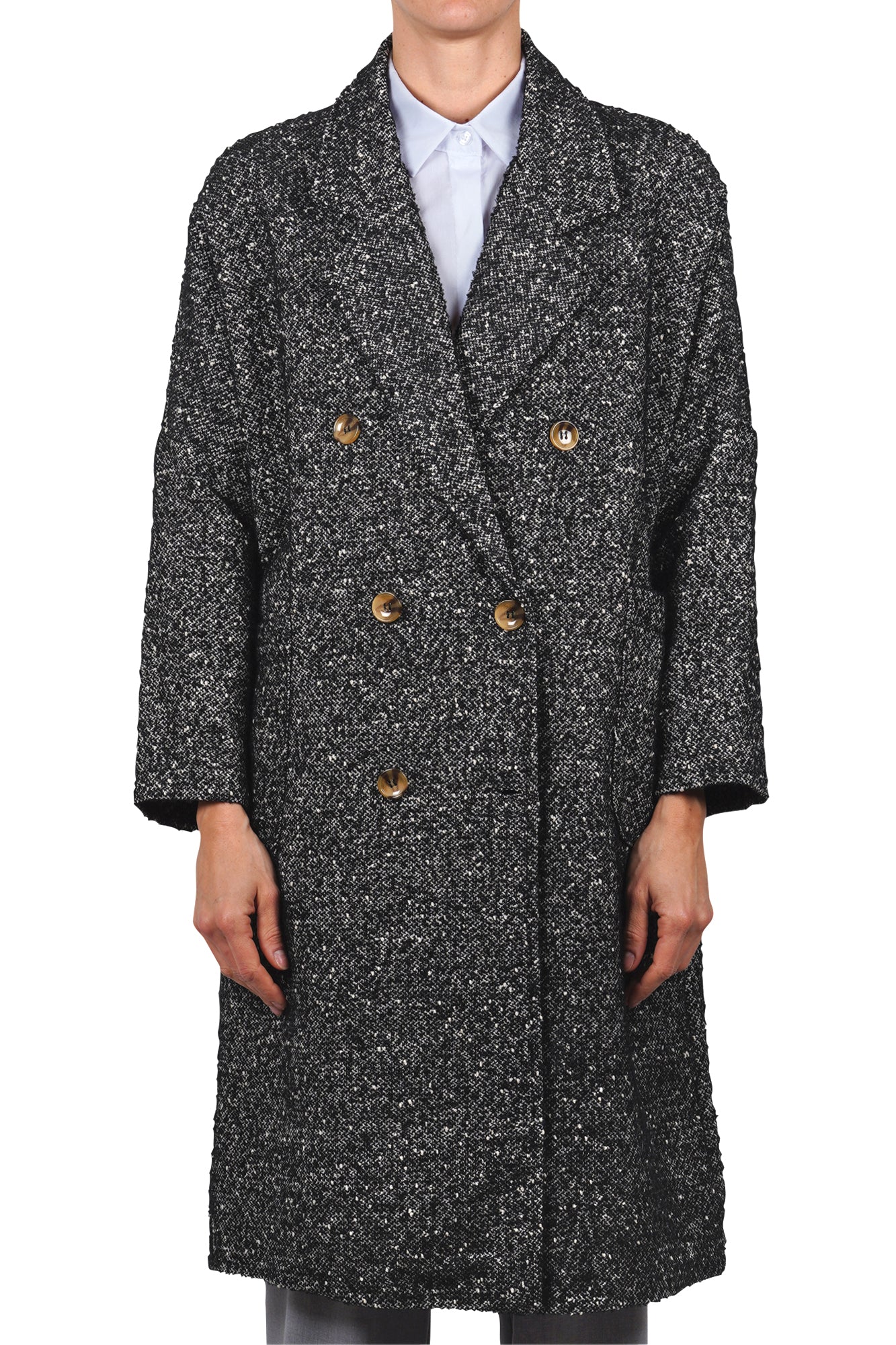 Cappotto doppiopetto sale e pepe.