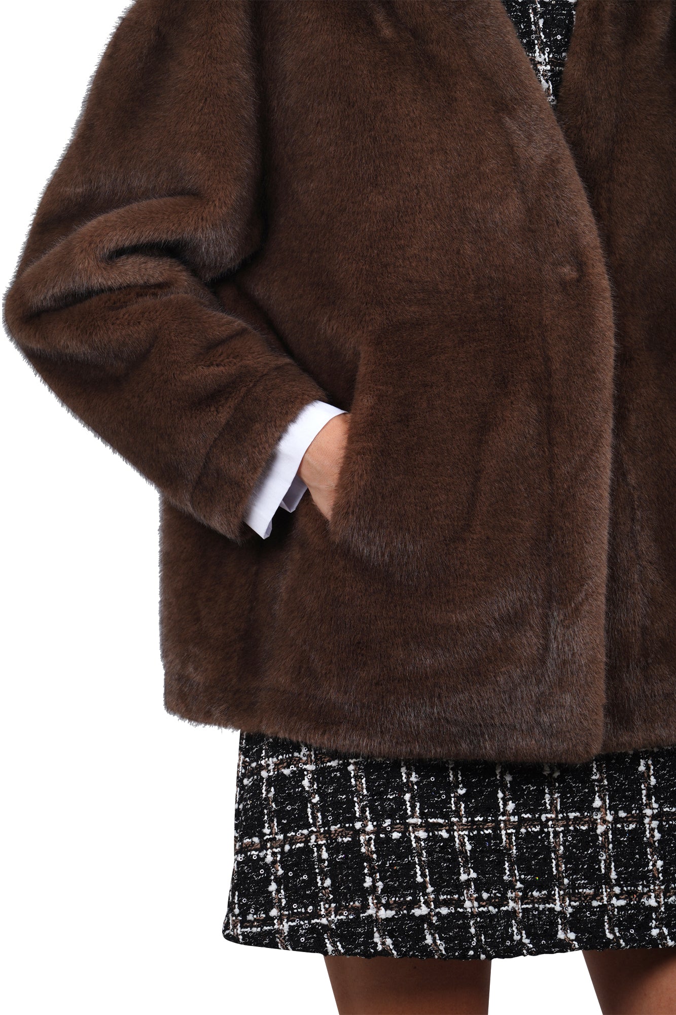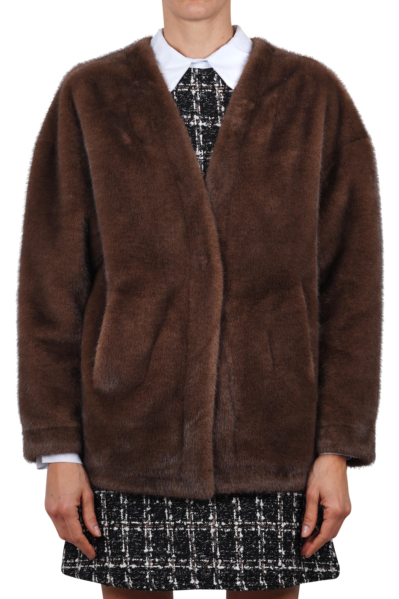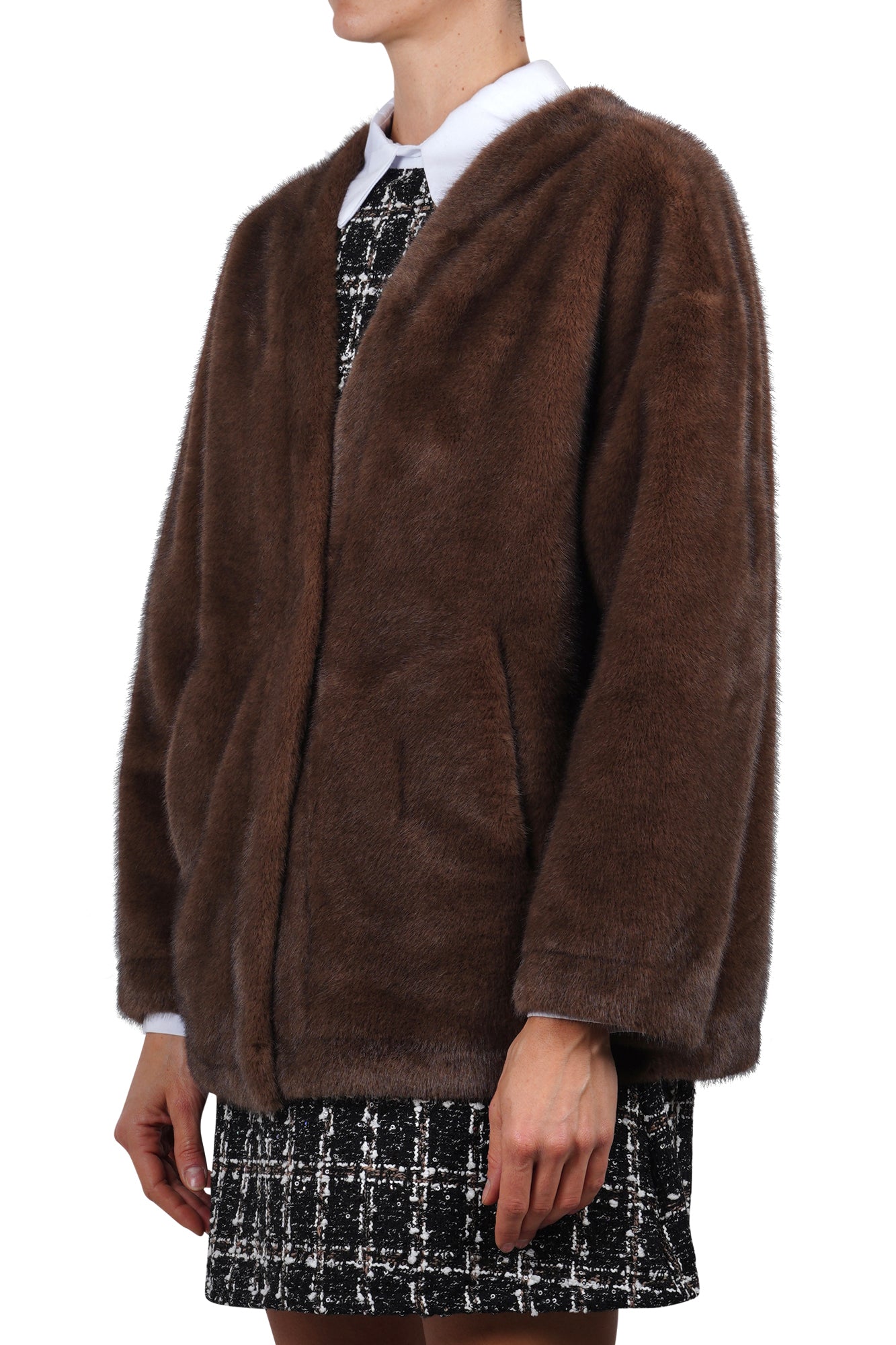 Product code: GKG 0492 CAPPOTTO IN ECOPELLICCIA MARRONE