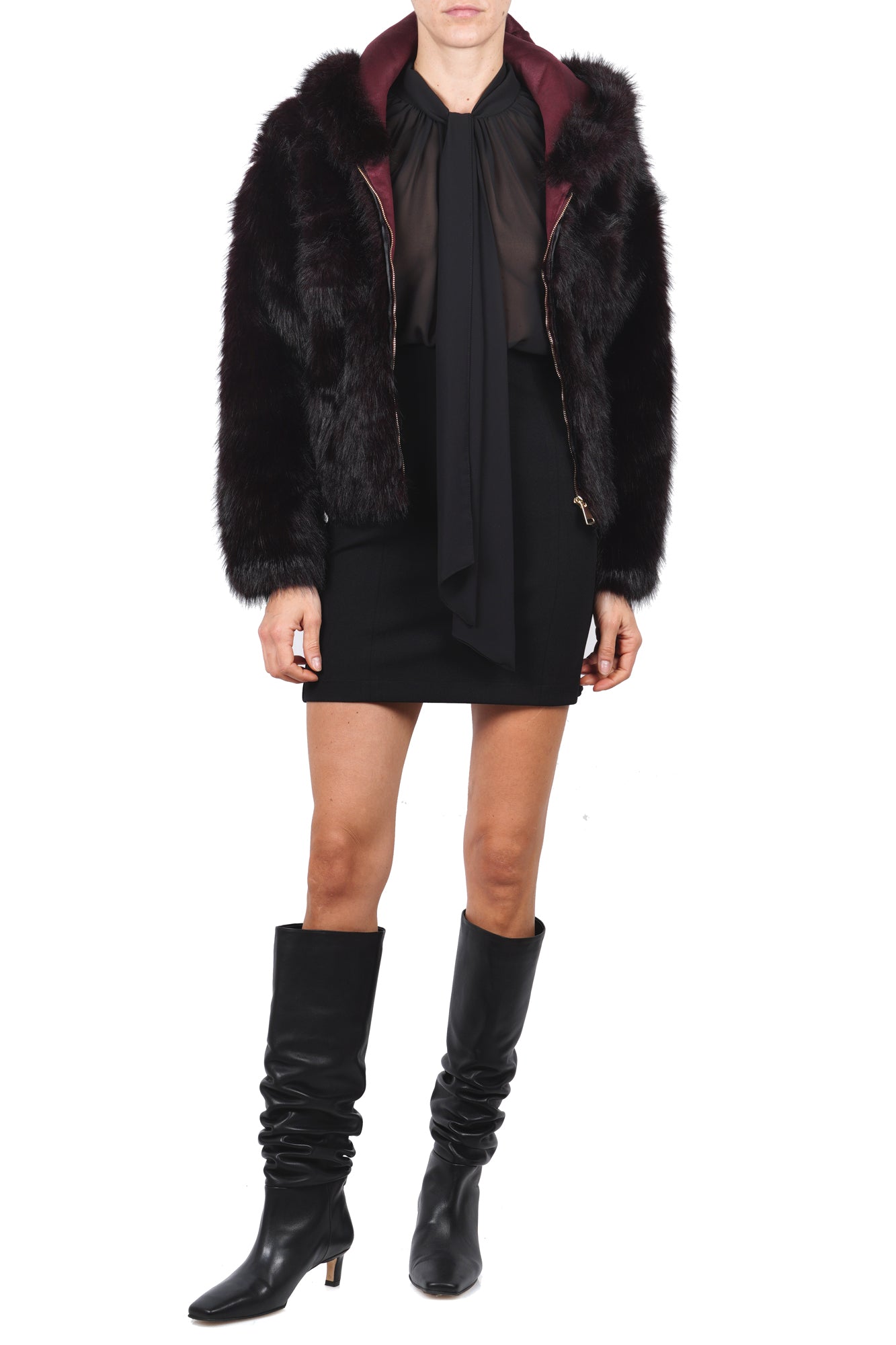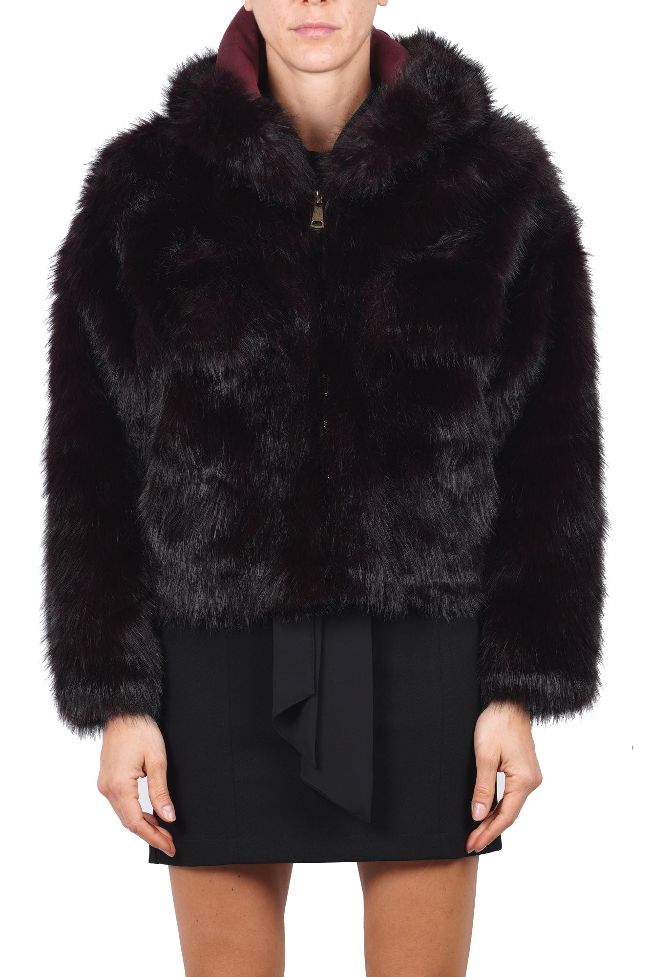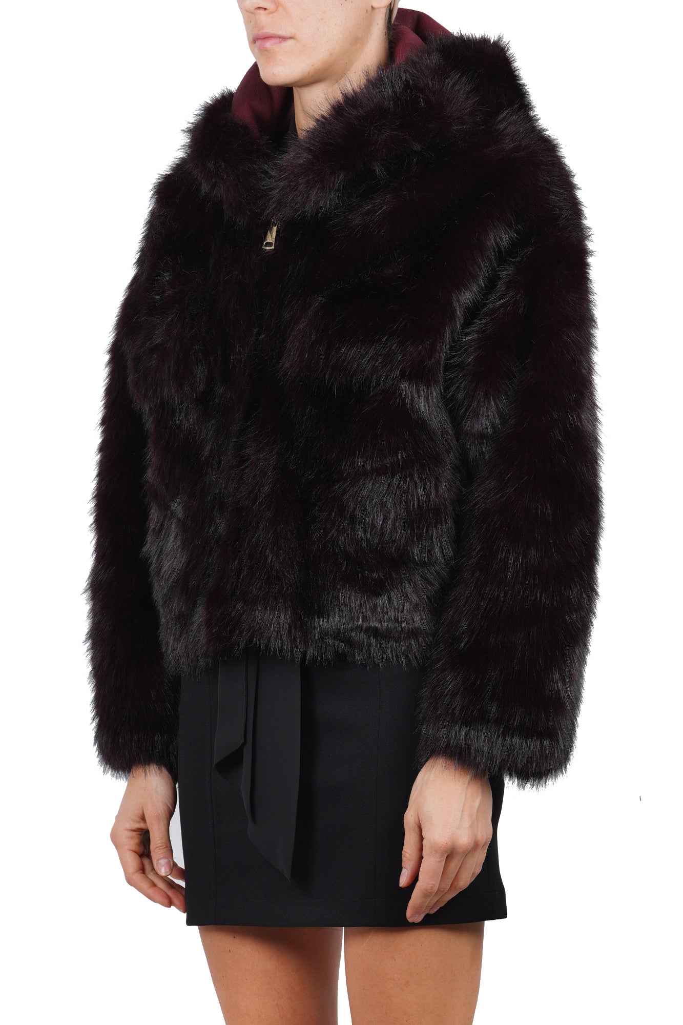 Product code: GKG 0554 CAPPOTTO IN ECOPELLICCIA BORDEAUX