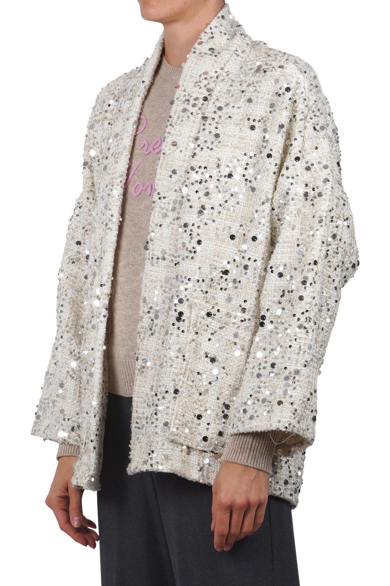 Product code: TOD 88021 GIACCA KIMONO PAILETTES PANNA/ARGENTO