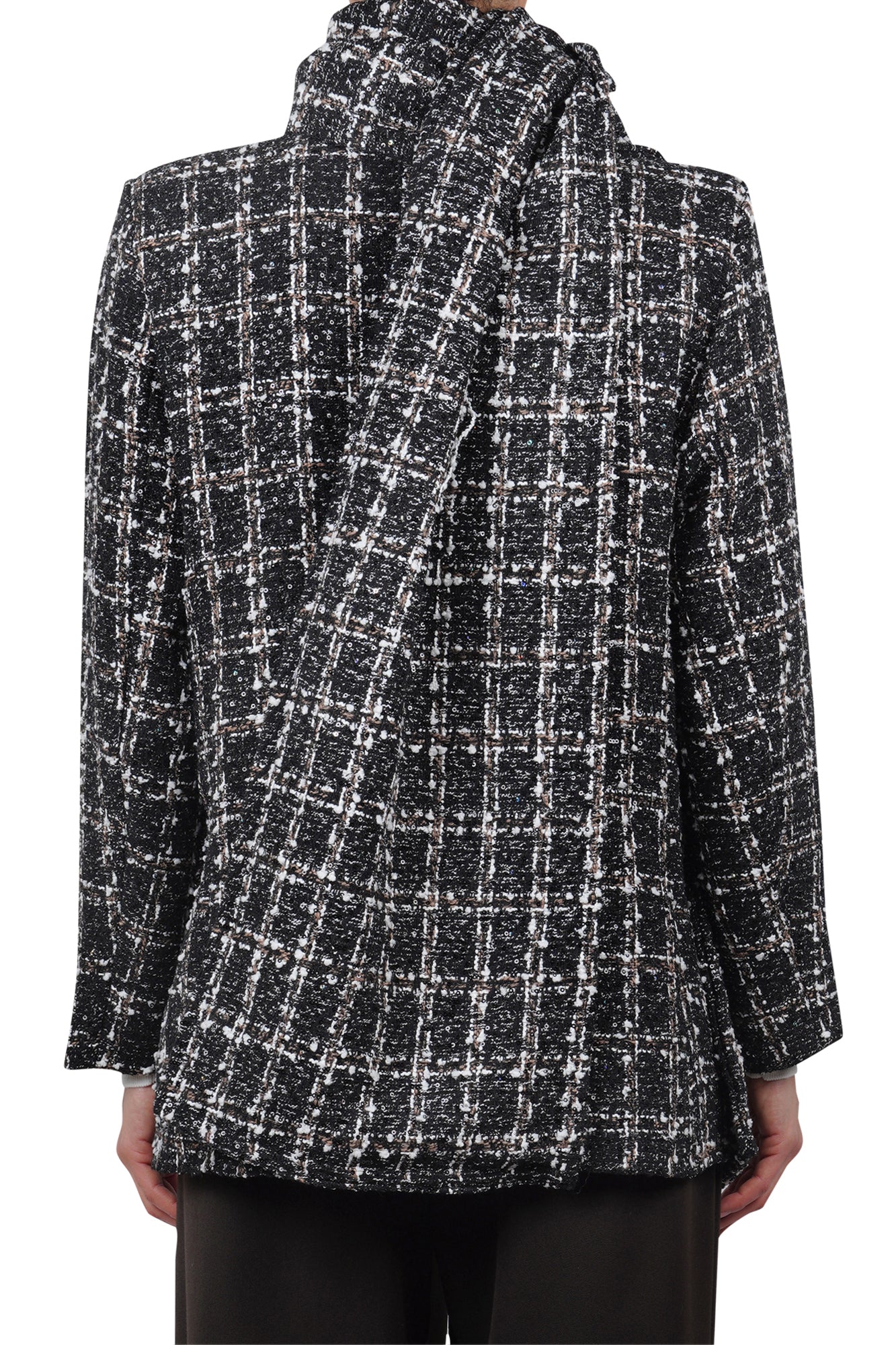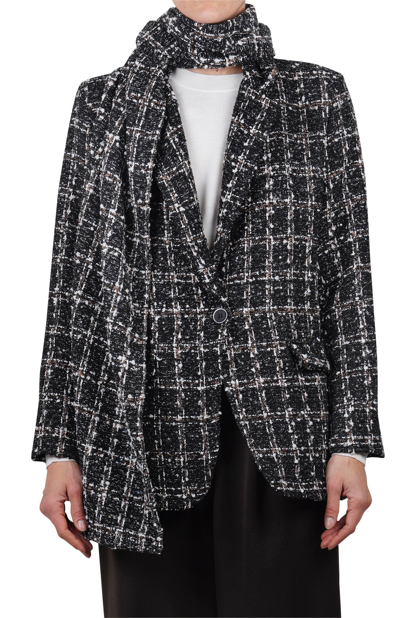 - Stile elegante: Il design della giacca bouclé con sciarpa abbinata è sofisticato e di tendenza.