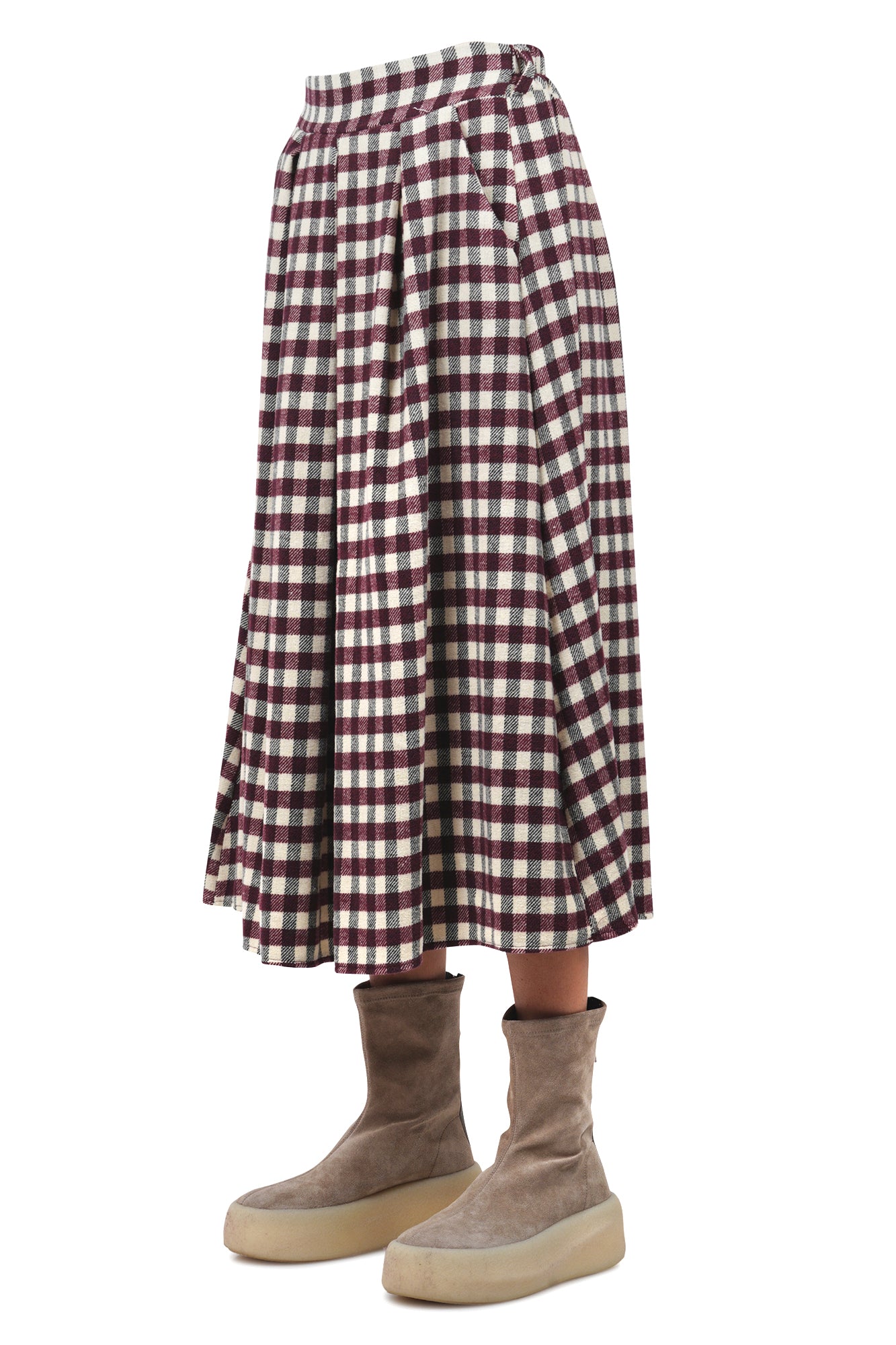 Gonna midi a quadri. Fantasia a quadretti. Vita alta. Banda elastica in vita sul retro per una vestibilità ottimale. Pieghe sul davanti. Tasche laterali a filo. Composizione tessuto: 79% poliestere; 19% viscosa; 2% elastomero. Vestibilità: regolare. Made in Italy. La modella indossa una taglia unica ed è alta 175 cm. Un capo versatile e chic, perfetto per creare look caldi e raffinati per la stagione fredda.