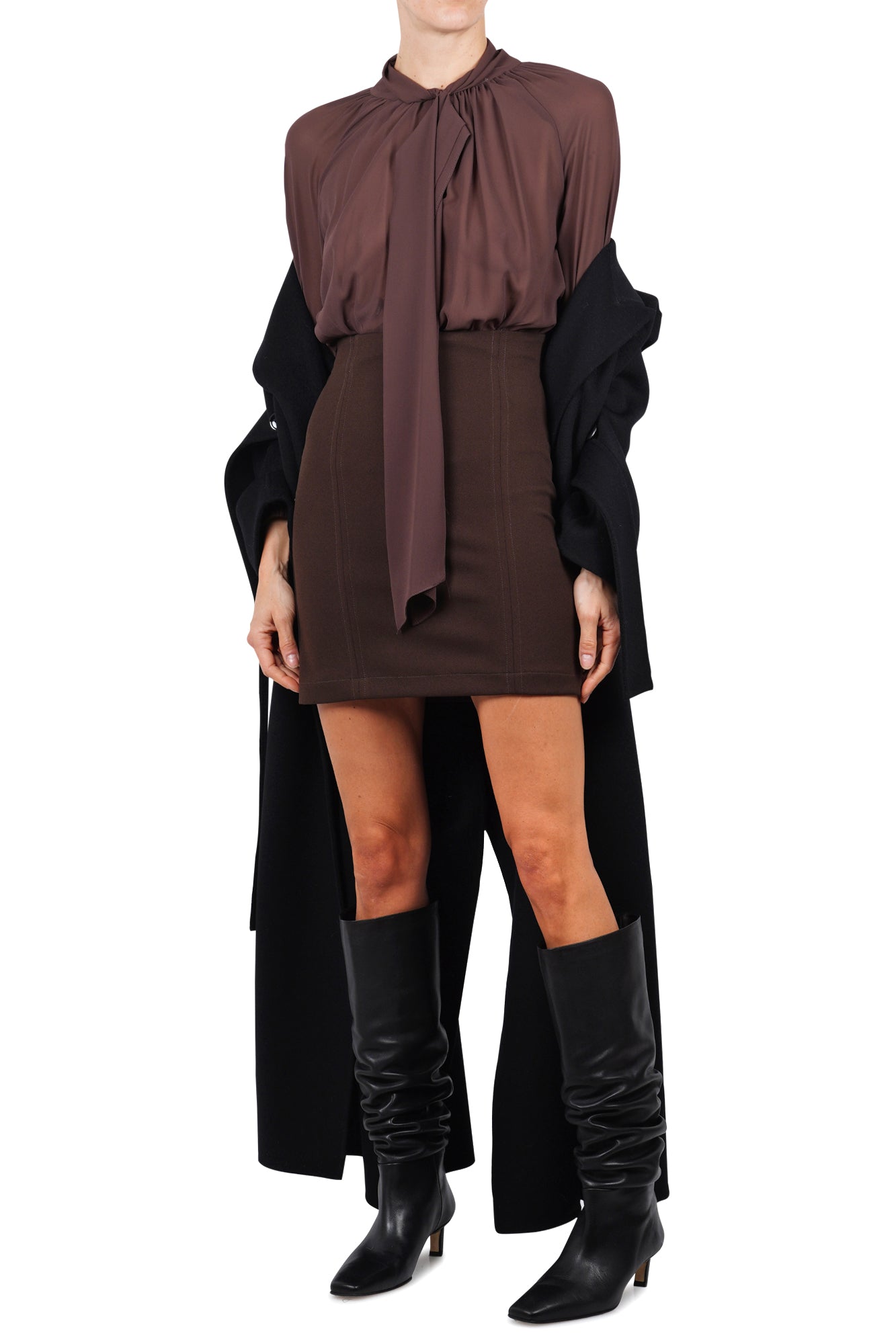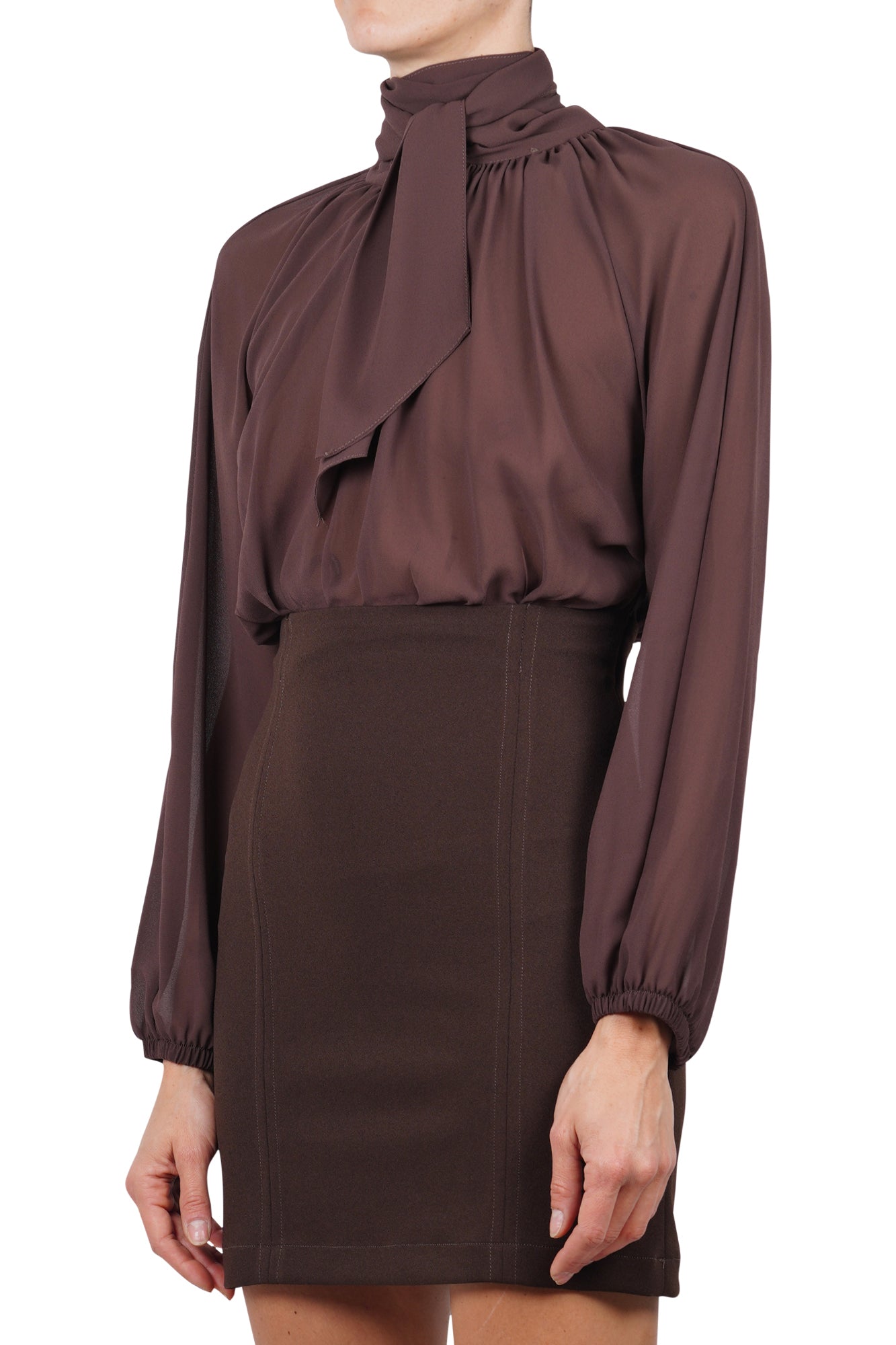 Corpetto in tessuto leggero semi trasparente e gonna in jersey.