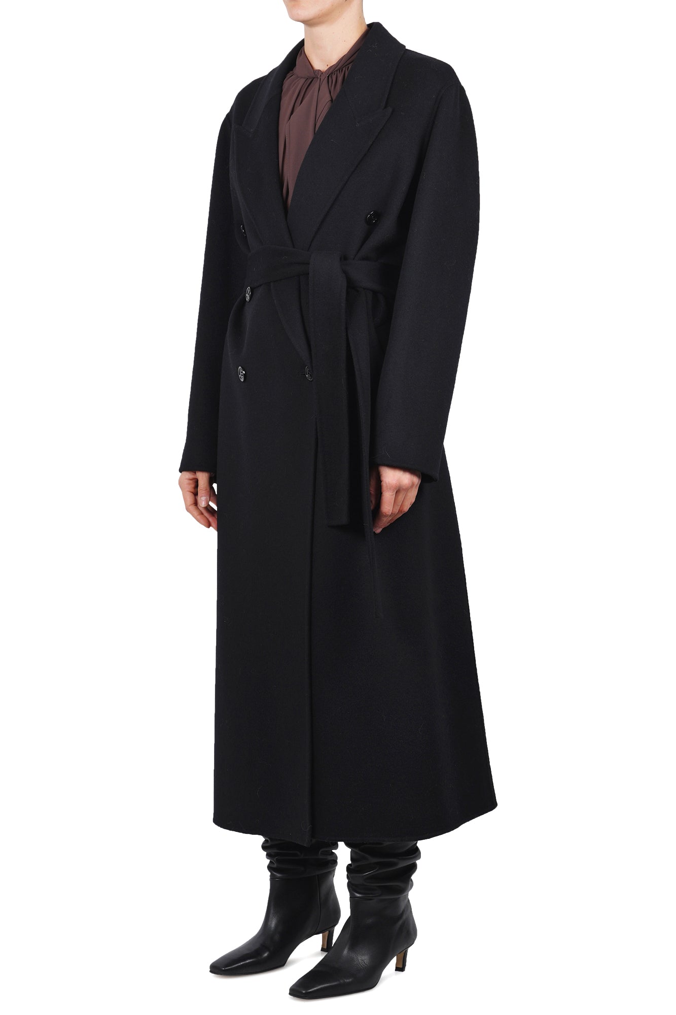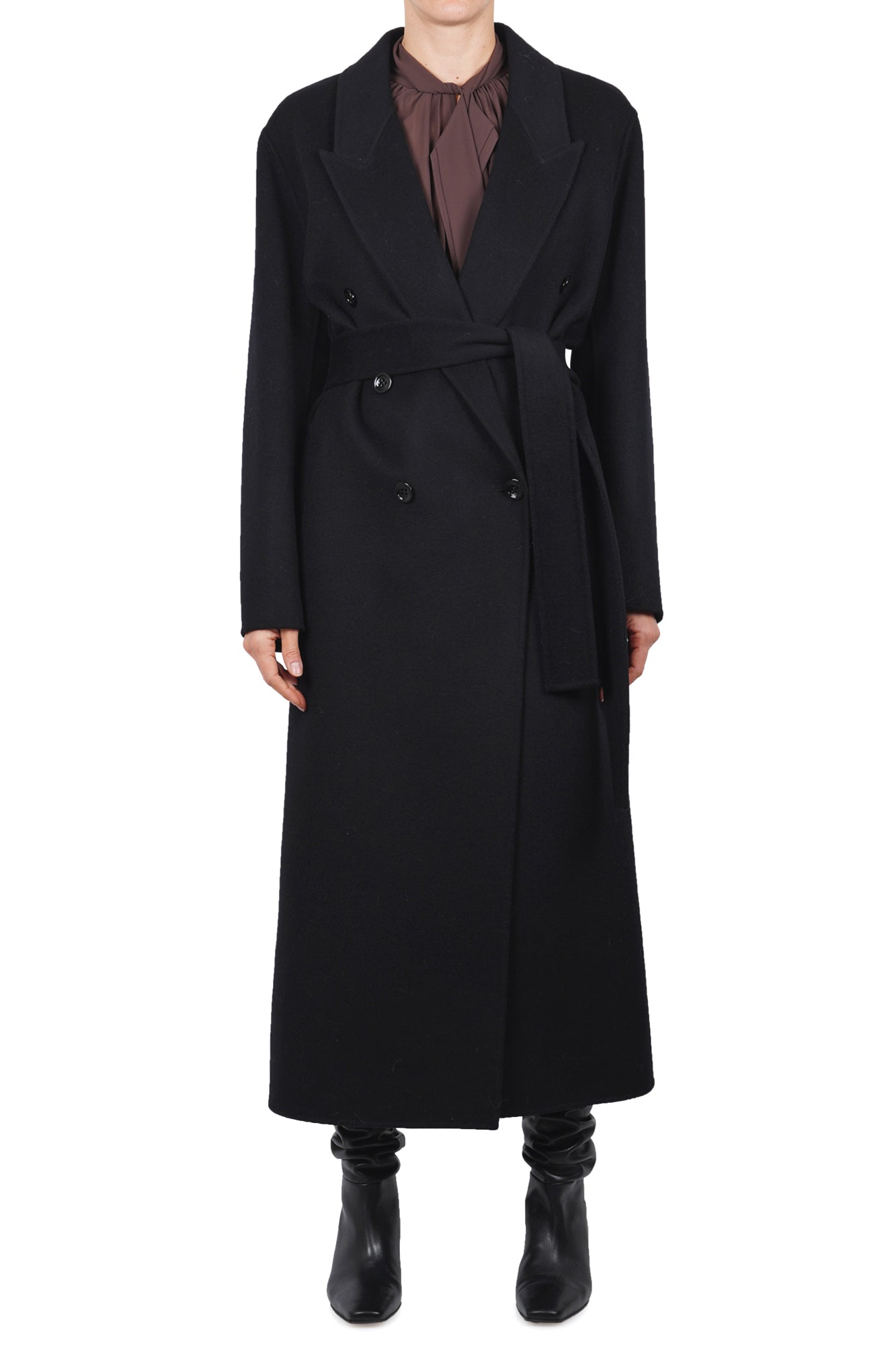 Cappotto lungo doppiopetto in panno.