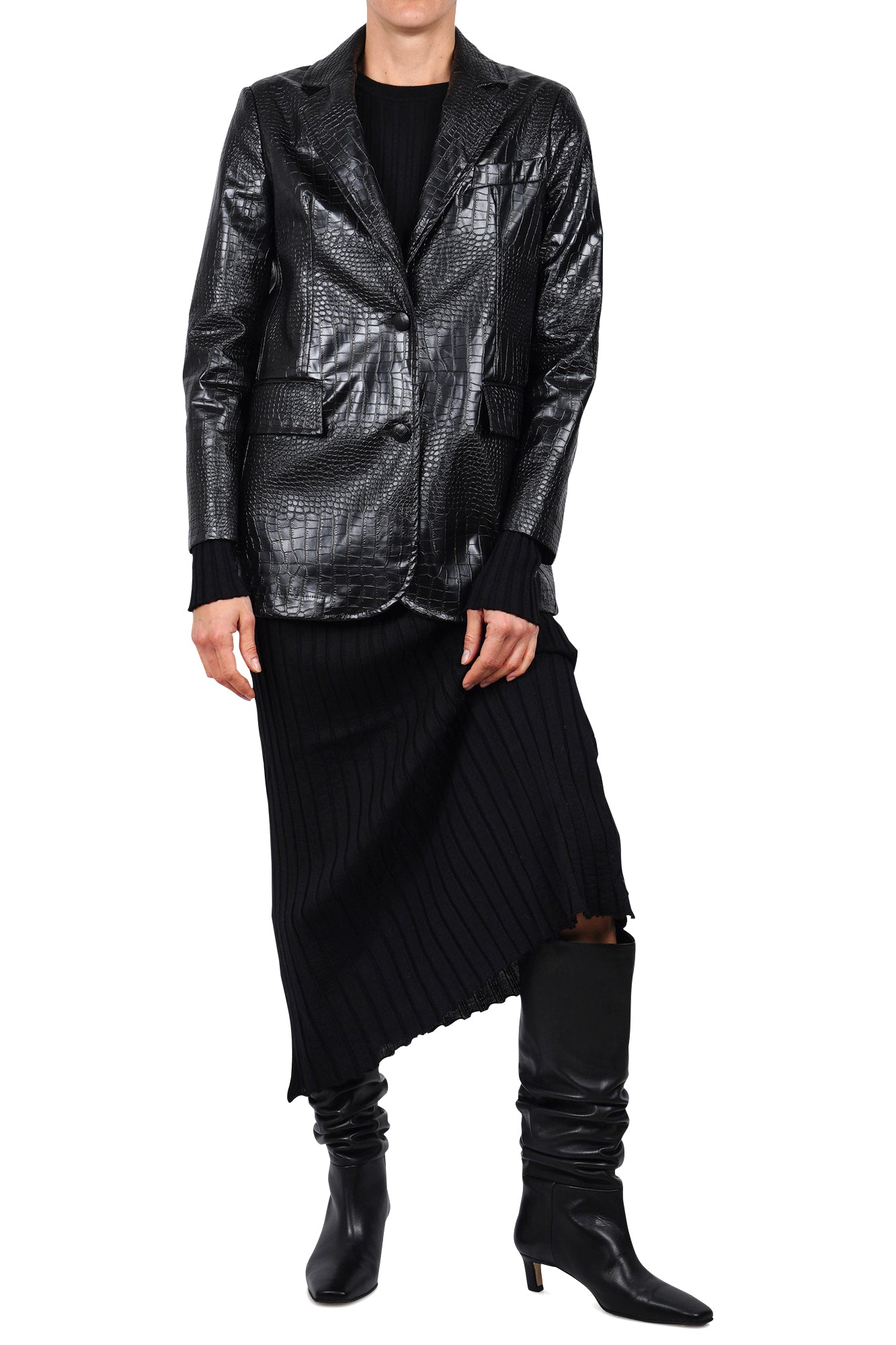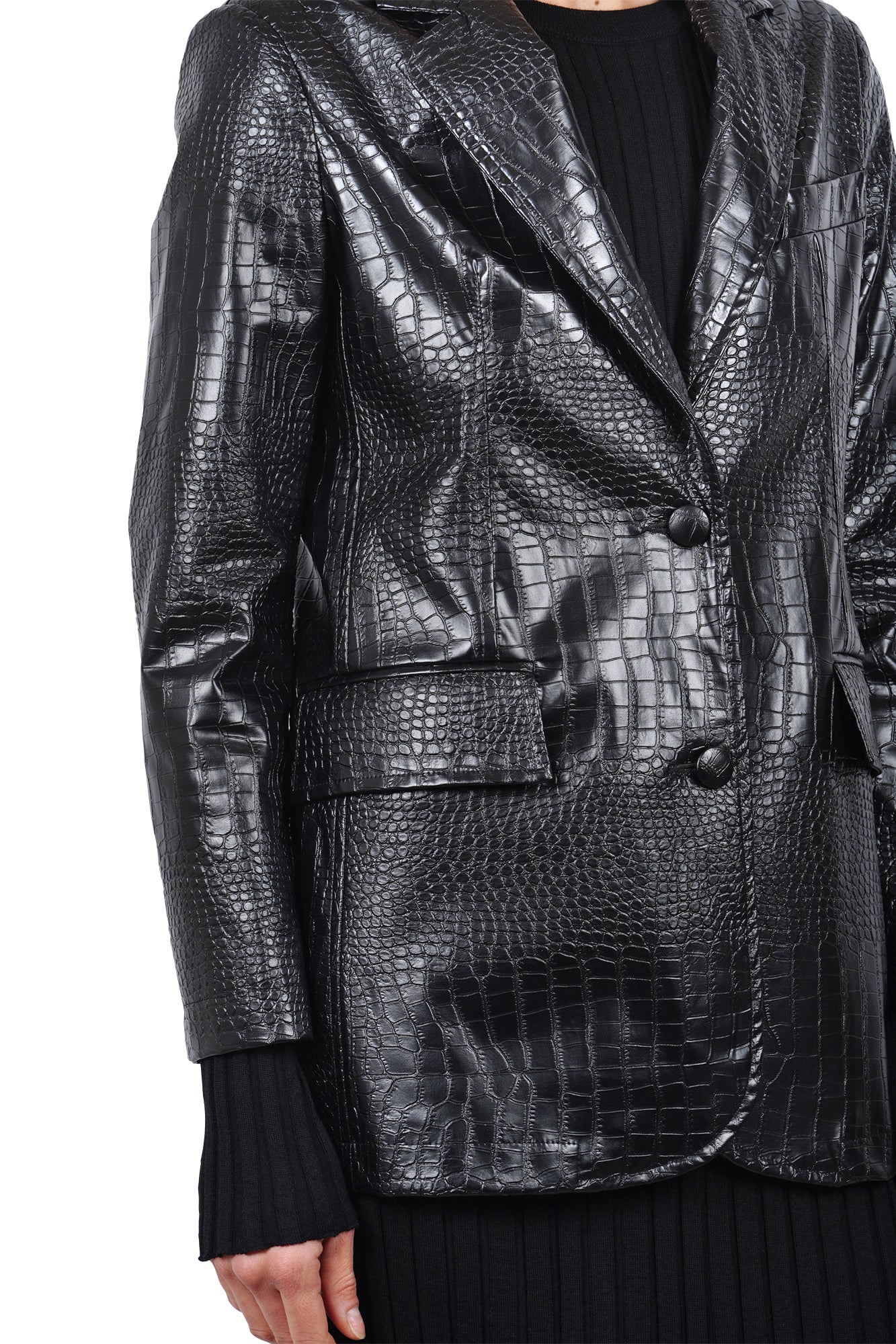 - Dettagli ricercati: Colletto con revers a punta e chiusura monopetto a due bottoni per un look sofisticato.