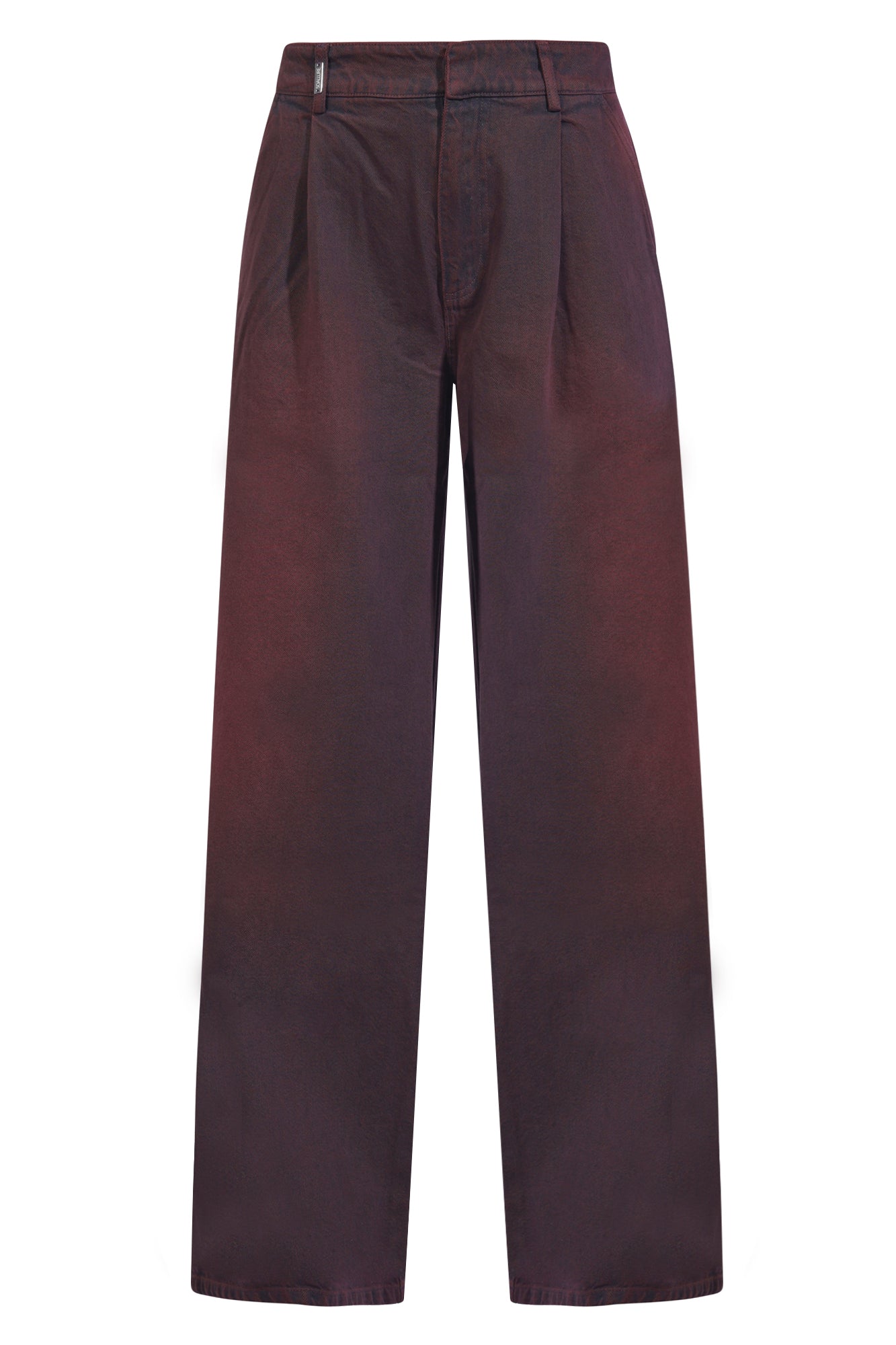 Pantalone a palazzo. Cinturino e passanti. Banda elastica in vita sul retro. Chiusura con gancetto e zip. Pinces frontali. Tasche alla francese laterali. Tasche a filetto sul retro. Vita alta. Gamba dritta ampia. Larghezza fondo: 34 cm. Composizione tessuto: 100% cotone. Vestibilità: regolare. Made in Italy. La modella indossa una taglia 40 ed è alta 175cm. Amiamo questo pantalone per il suo lavaggio e per la sua gamba ampia super cool.