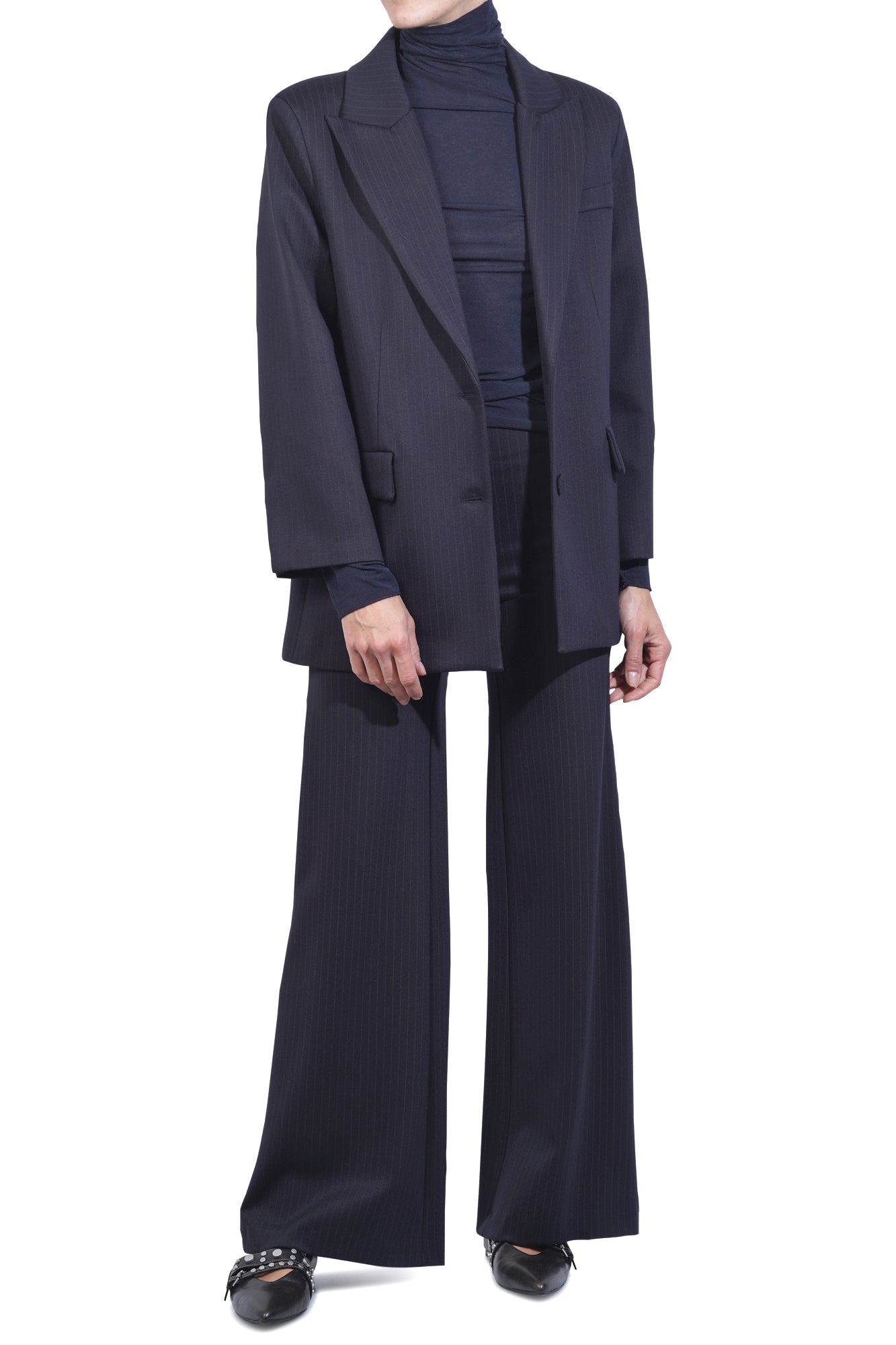 Product code: V66032C PANTALONE FLARE P/MILANO GESSATO NAVY BLUE