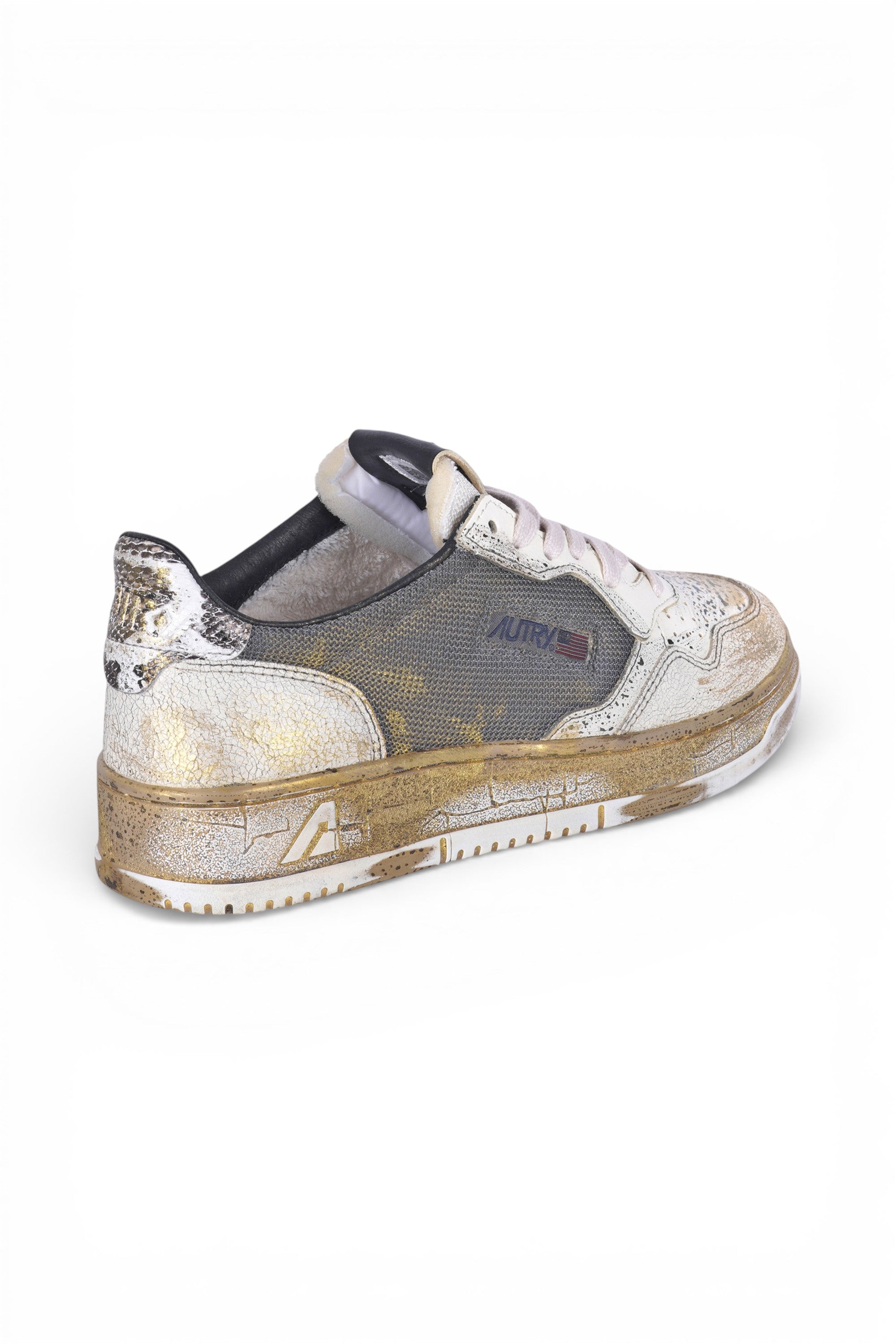 Tomaia in pelle liscia e mesh con inserti in pelle effetto crackle.