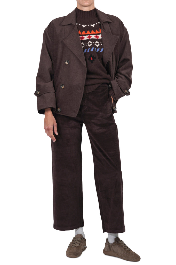 Dettagli jaquard frontali e sul retro.