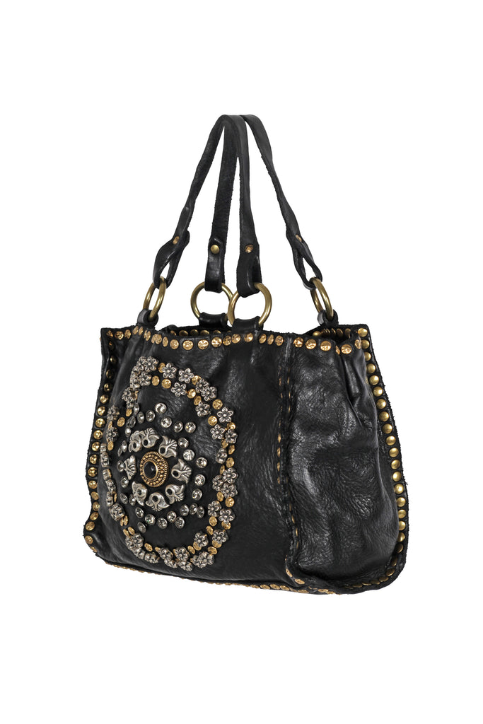 • Stile unico: La borsa Campomaggi è realizzata in pelle vintage con borchie che conferiscono un look distintivo e di tendenza.