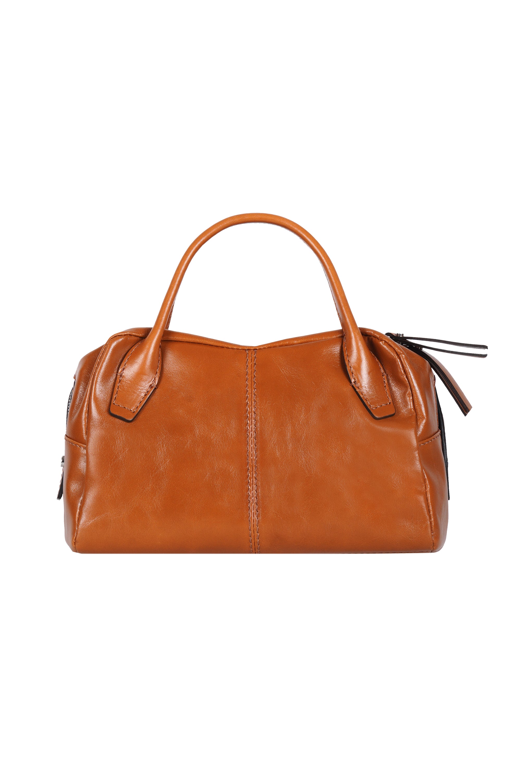 Adjustable and removable leather shoulder strap for shoulder or crossbody use.