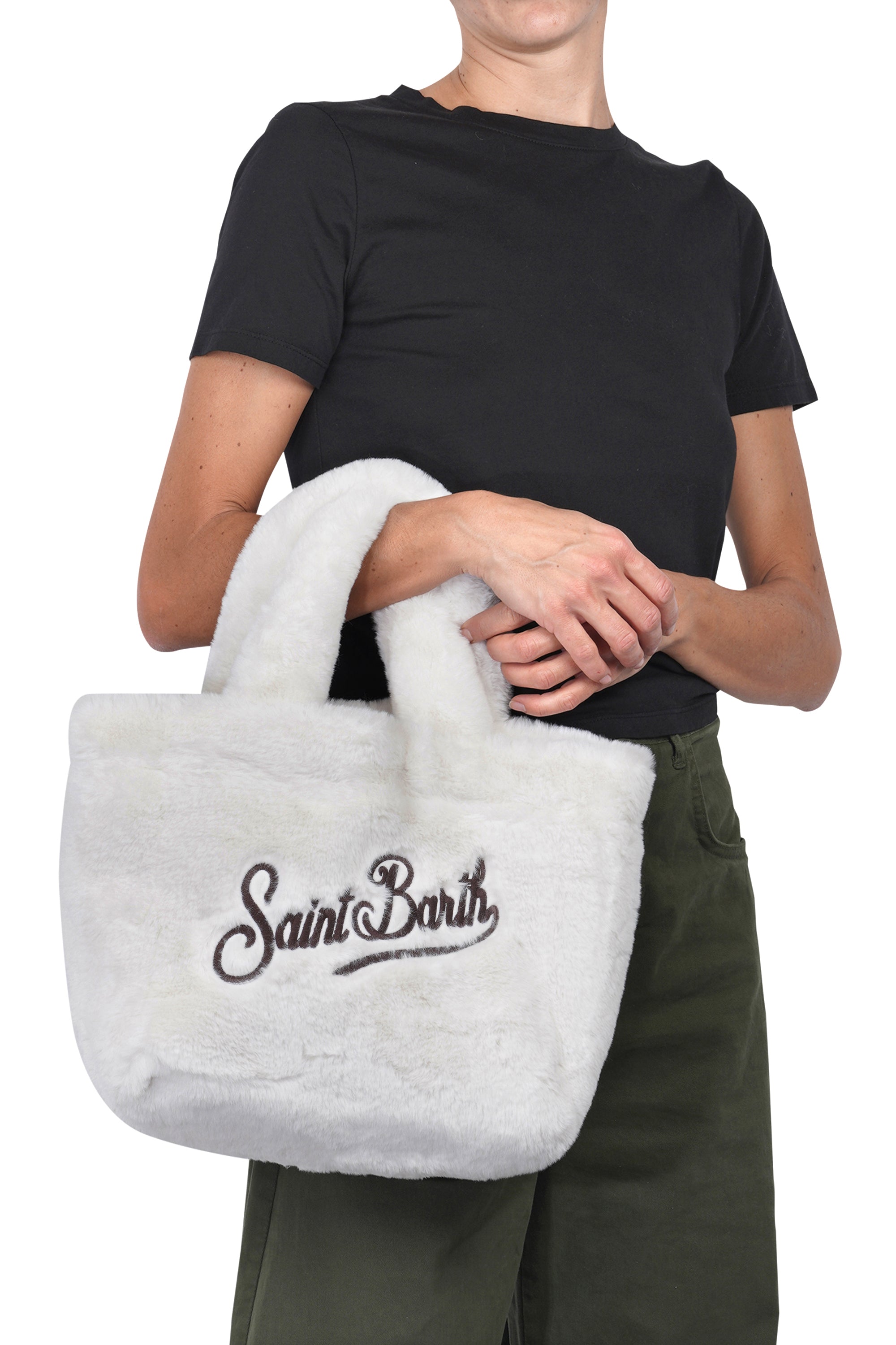 Colette Soft Fur Bag. Handbag. Faux fur effect. Embroidered logo. Fur handles. Adjustable and removable leather shoulder strap. Button closure. Internal zip pocket. Dimensions: 28 x 26 x 13 cm. Composition: 70% modacrylic, 30% acrylic.