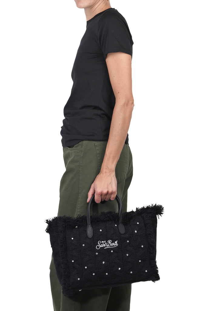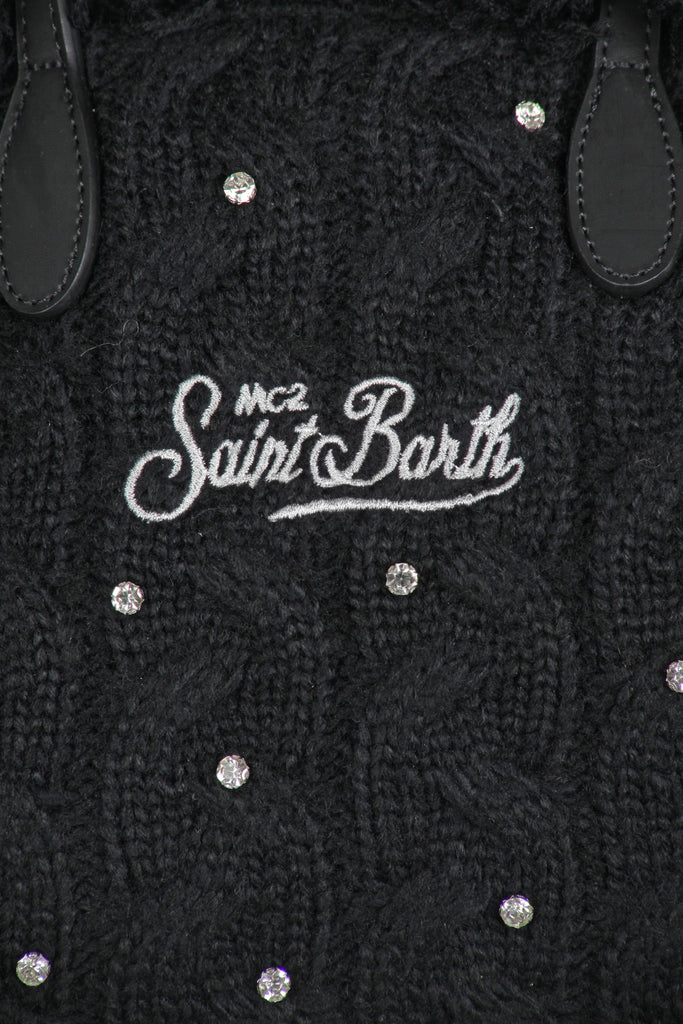 Colette Wool Bag. Handbag. Fabric in a wool blend with a braided pattern. Applied rhinestones. Embroidered logo. Zip closure. Internal pocket. Adjustable and removable leather shoulder strap. Leather handles. Dimensions: 27 x 25 x 14cm. Composition: 100% acrylic.