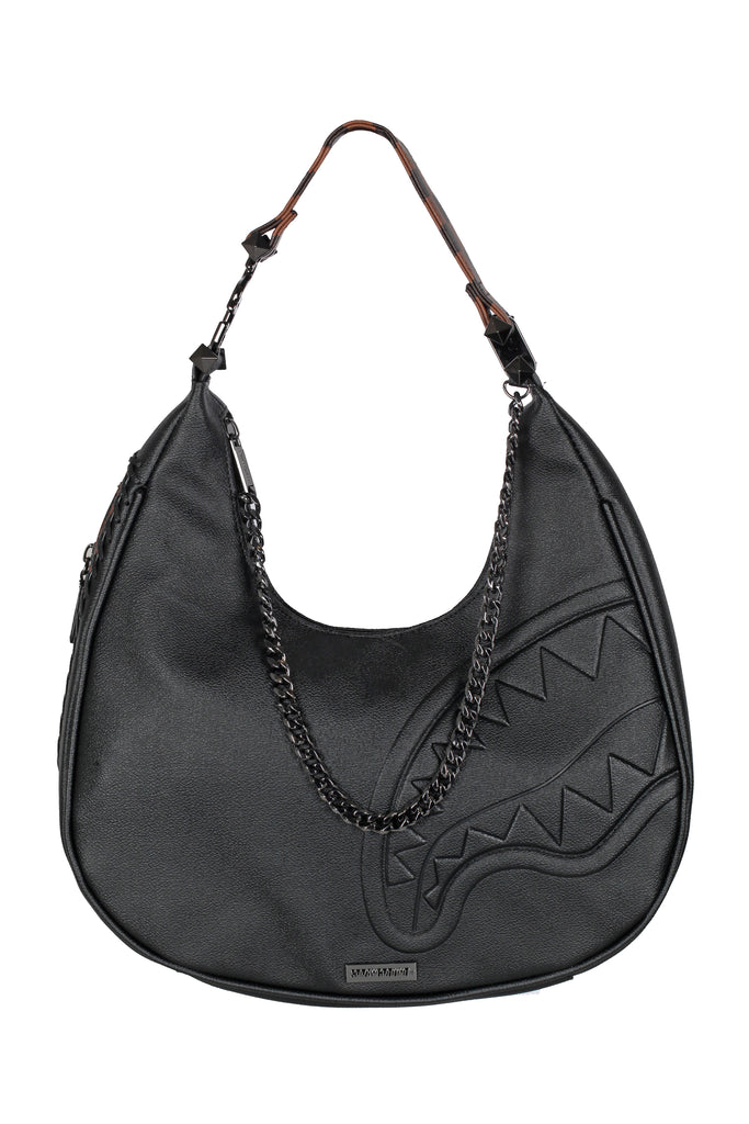 Shoulder bag Does of Check Vice. Detail of embossed lateral boccain. Tag with metal logo. Side pocket with check print, zip closure. Lined interior. Internal pocket with zip. Check print handle with metal details. Gunmetal chain attached to the zipper. Dimensions: 22.86 x 35.56 x 7.62 cm Composition: 100% PVC. Lining composition: 100% polyester.