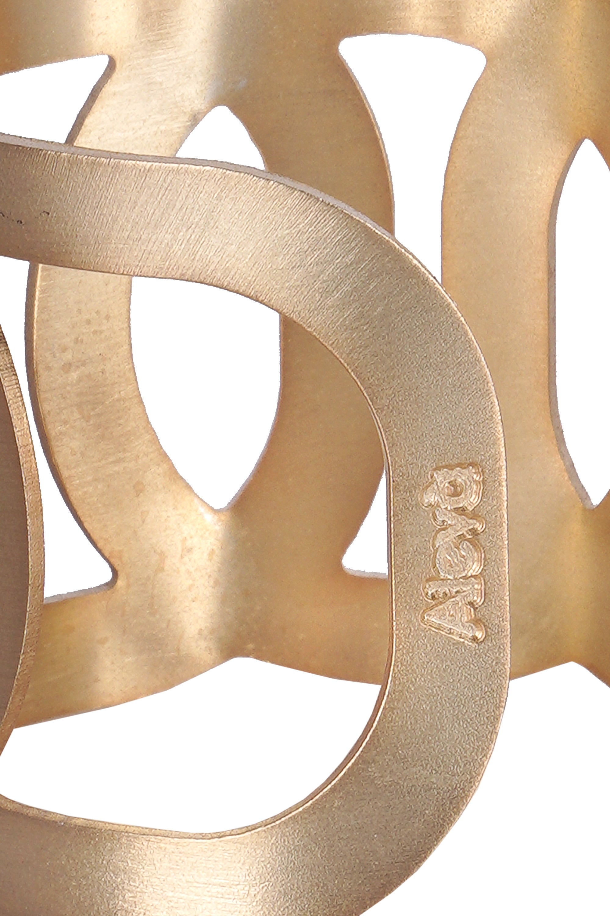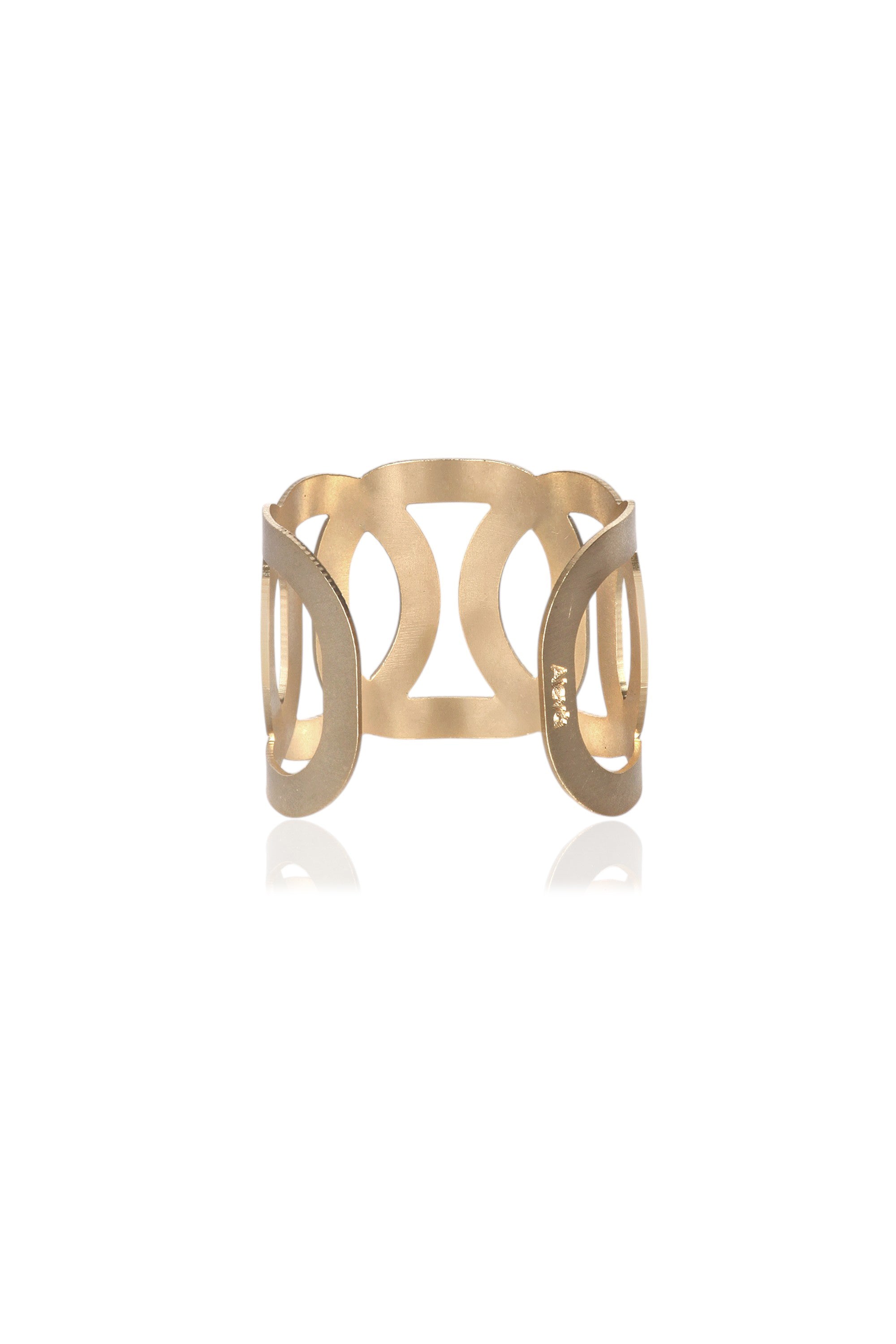 Dafne Bracelet. Rigid open cuff bracelet. Woven geometric design with engravings. Satin gold finish. Composition: metal. Handmade. Made in Italy. An accessory with a sculptural design that adds a touch of modern elegance to any look.