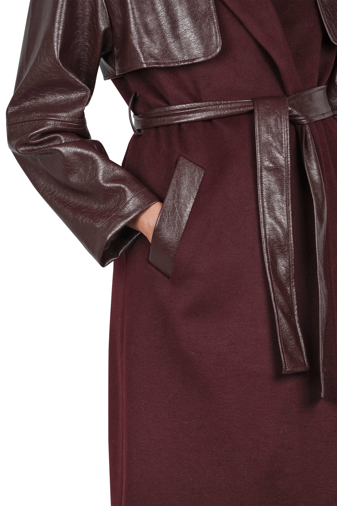 Piped pockets with faux leather effect.