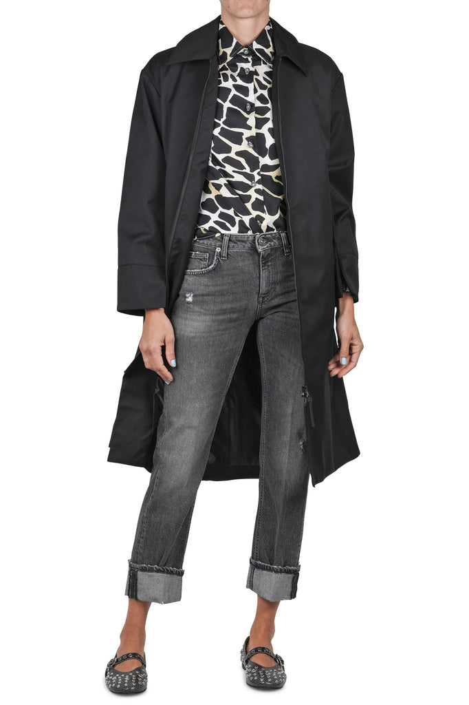 - Dettagli unici: maniche con spacchetti, tasche laterali con patta e bottoni magnetici.