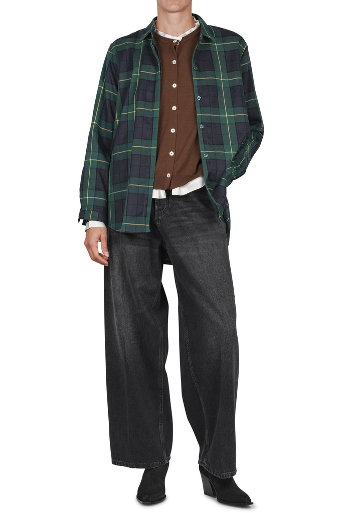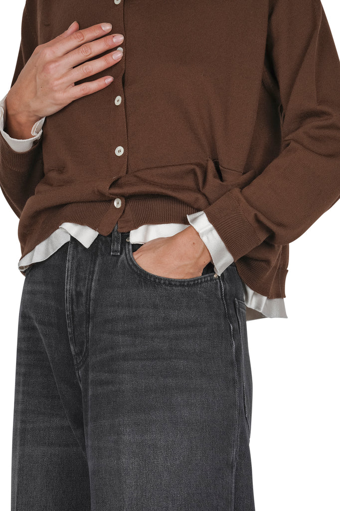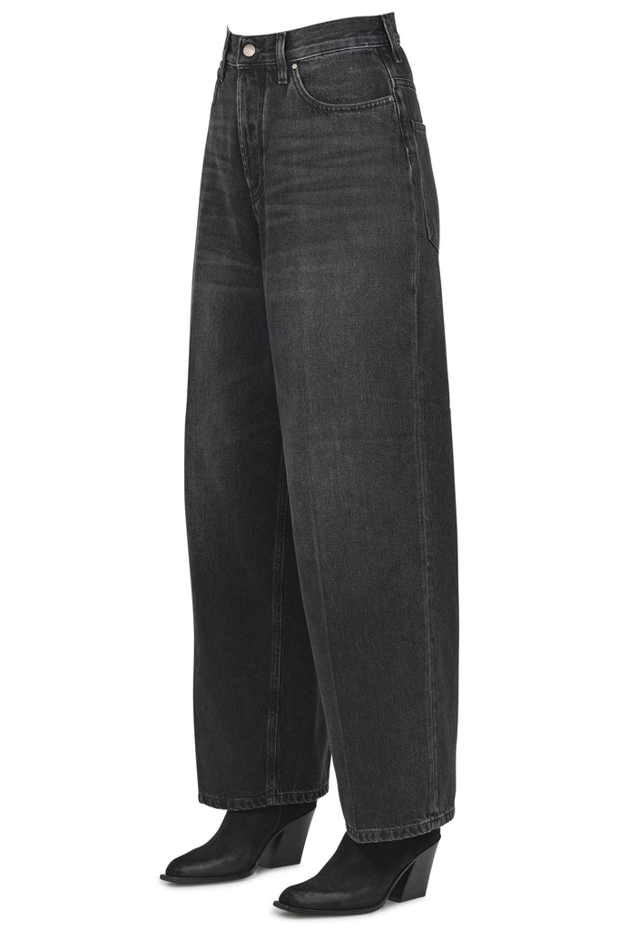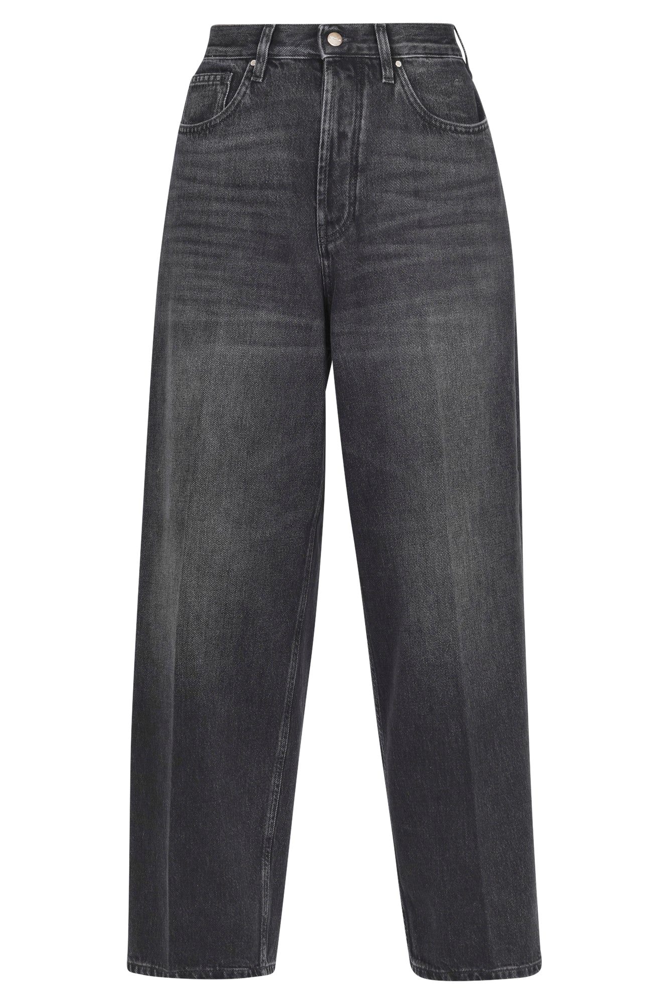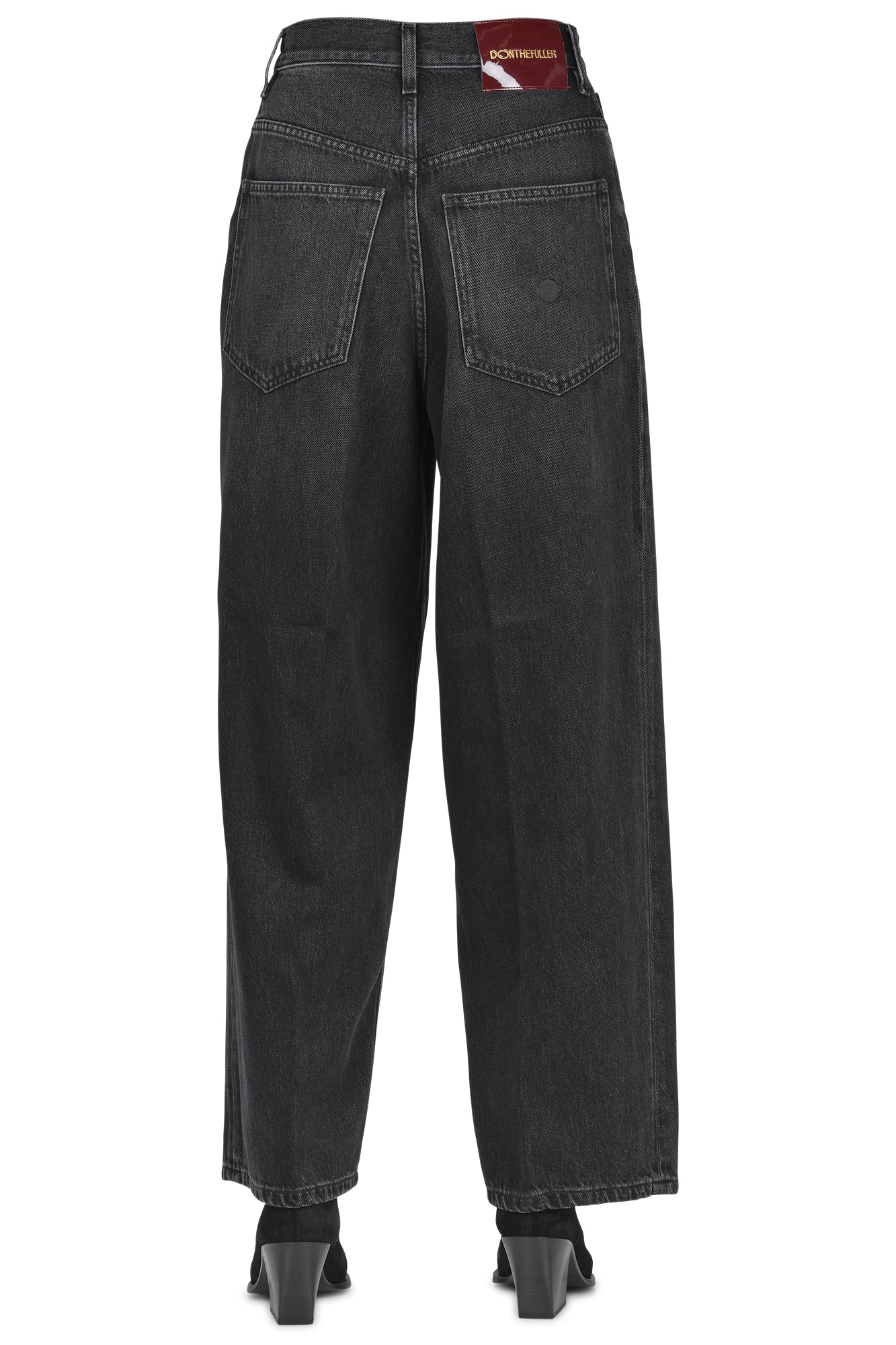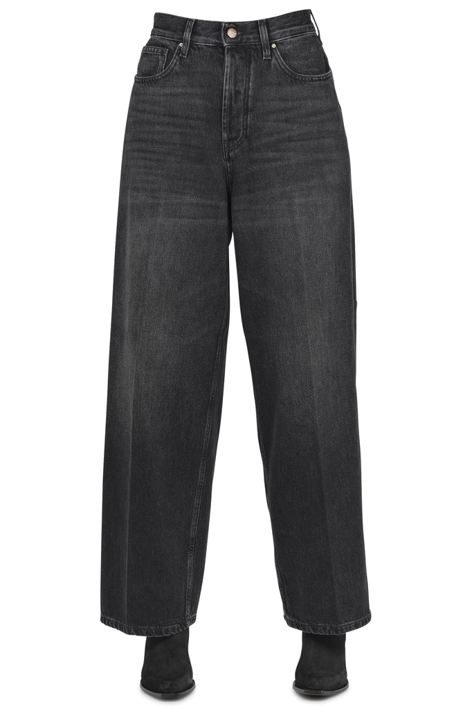 Jeans Berlin. Five pockets. Belt with loops. Front closure with metal buttons. high waist. Stone-wash effect. Embroidered logo on the back pocket. Wide leg. Bottom width: 26.5 cm. Fabric composition: 100% cotton. Fit: regular: Made in Italy. The model is wearing a Size S and is 175 cm tall. We love these jeans suitable for all casual looks.