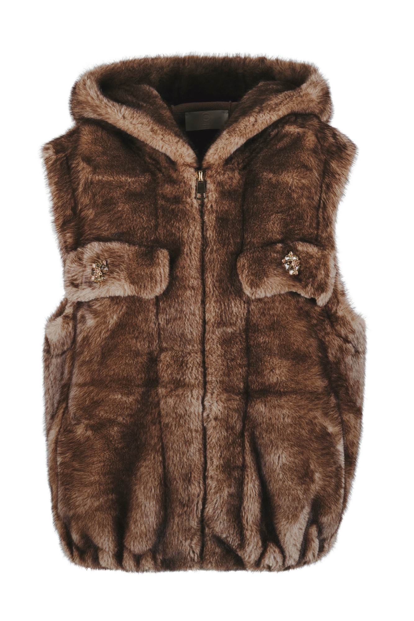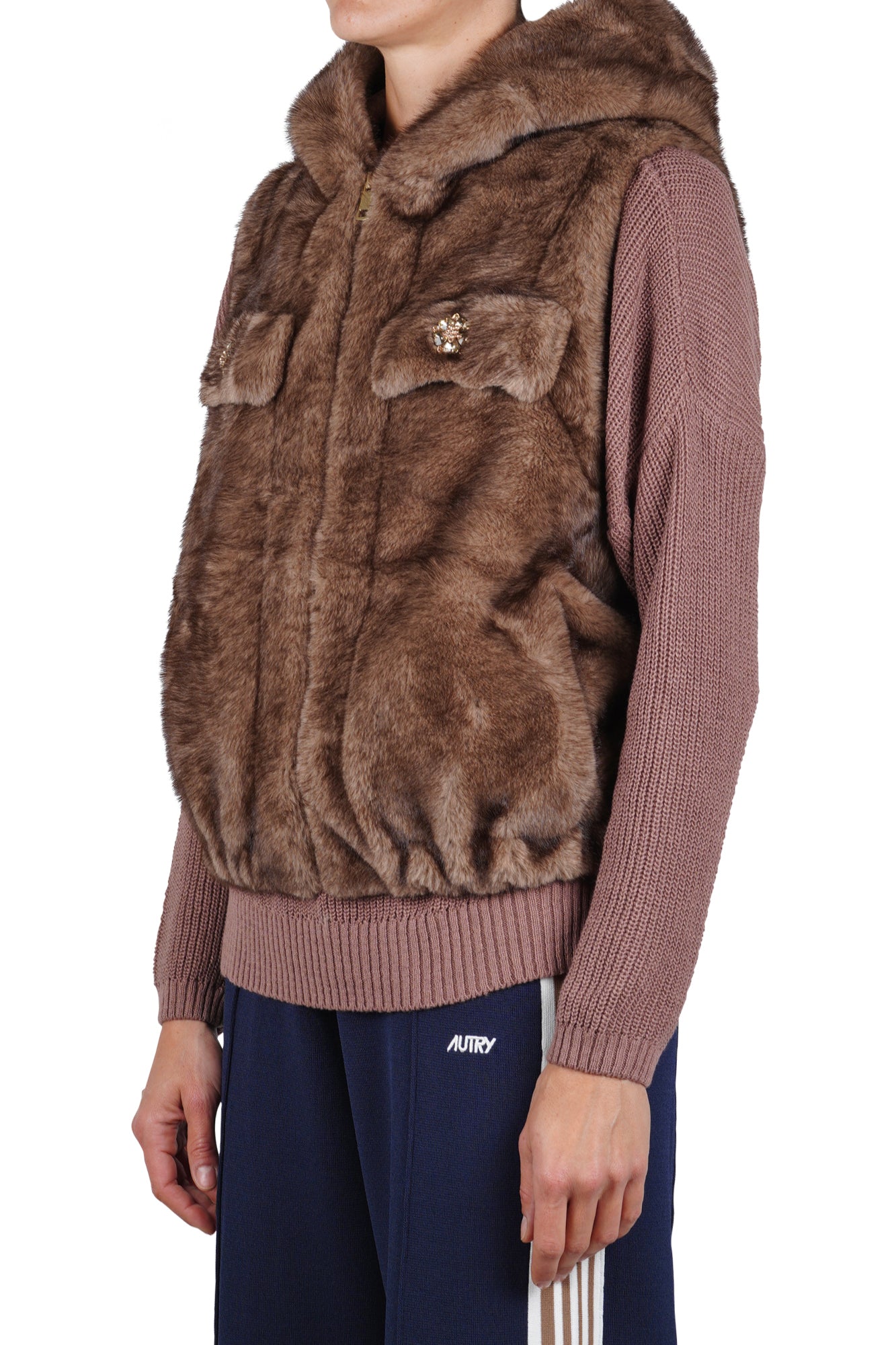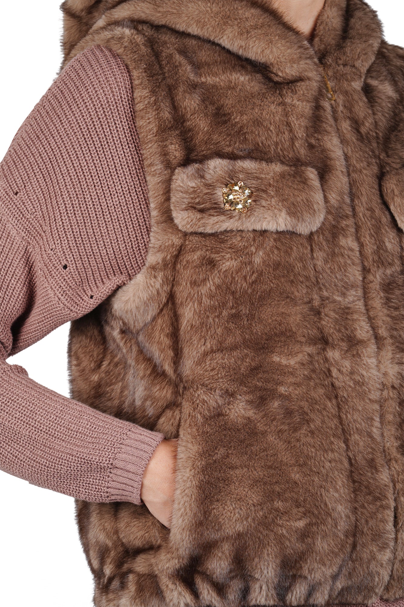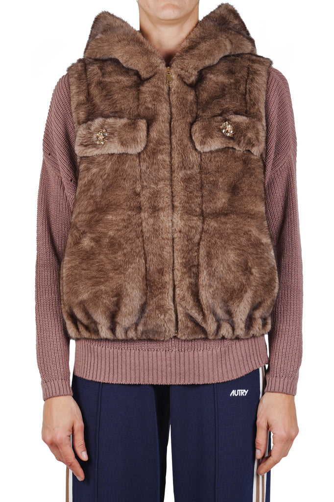 Gilet in eco-pelliccia con dettagli gioiello