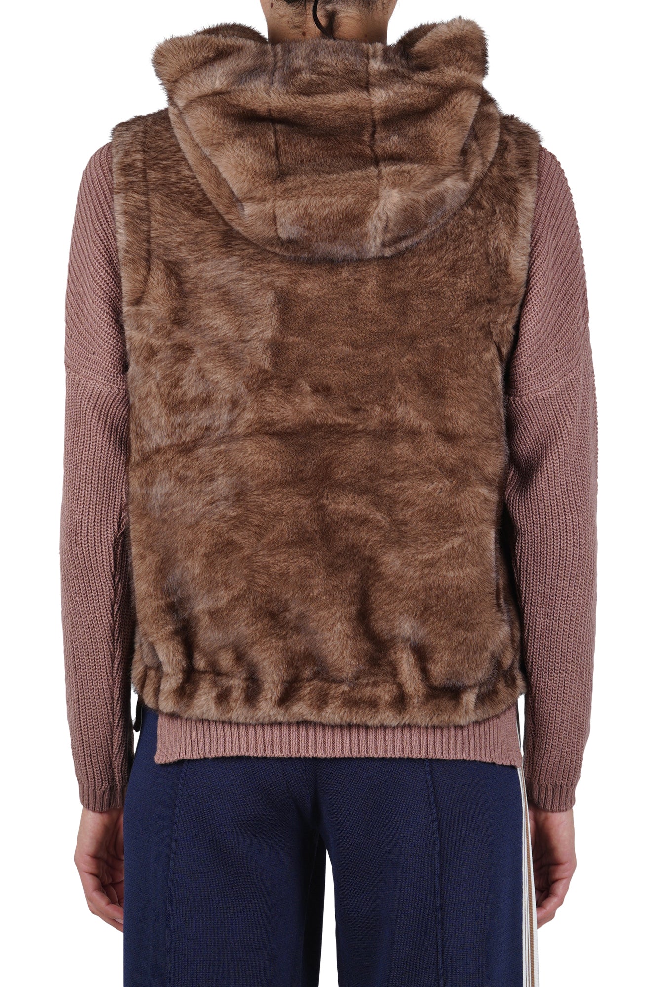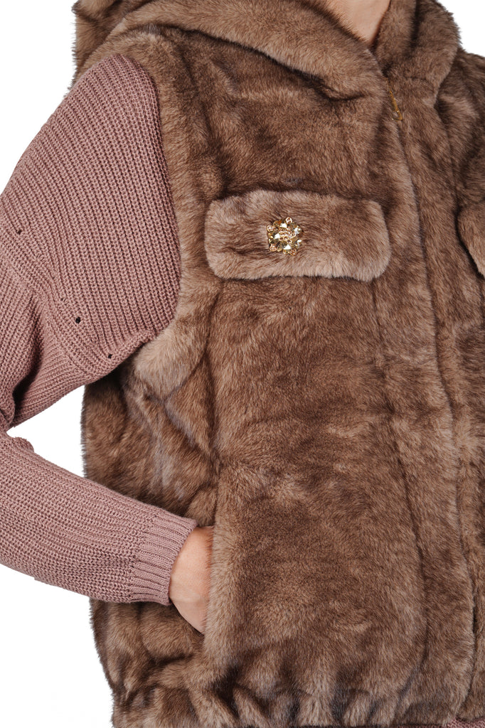 Product code: MOO 805 SMANICATO ECOPELLICCIA CON CAP. BIGE/MARRONE