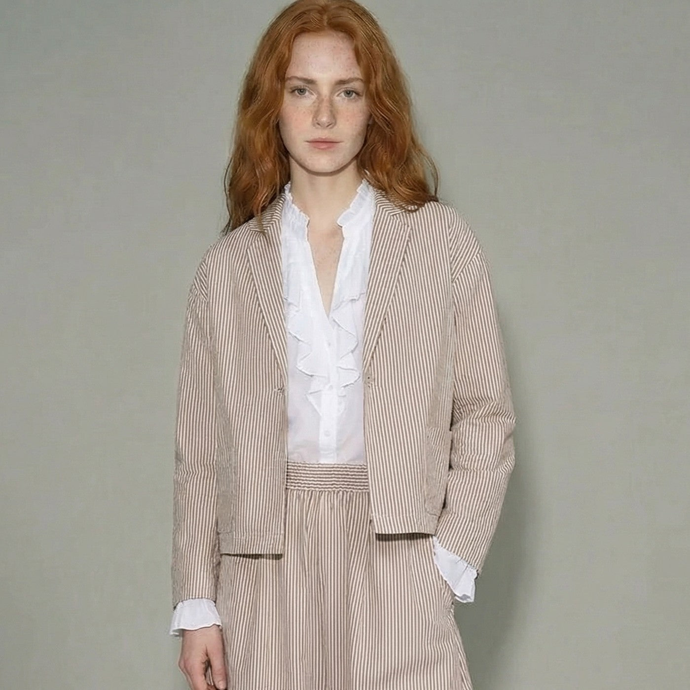Product code: J4313075/34R GIACCA SEERSUCKER A RIGHE ALMOND 1079