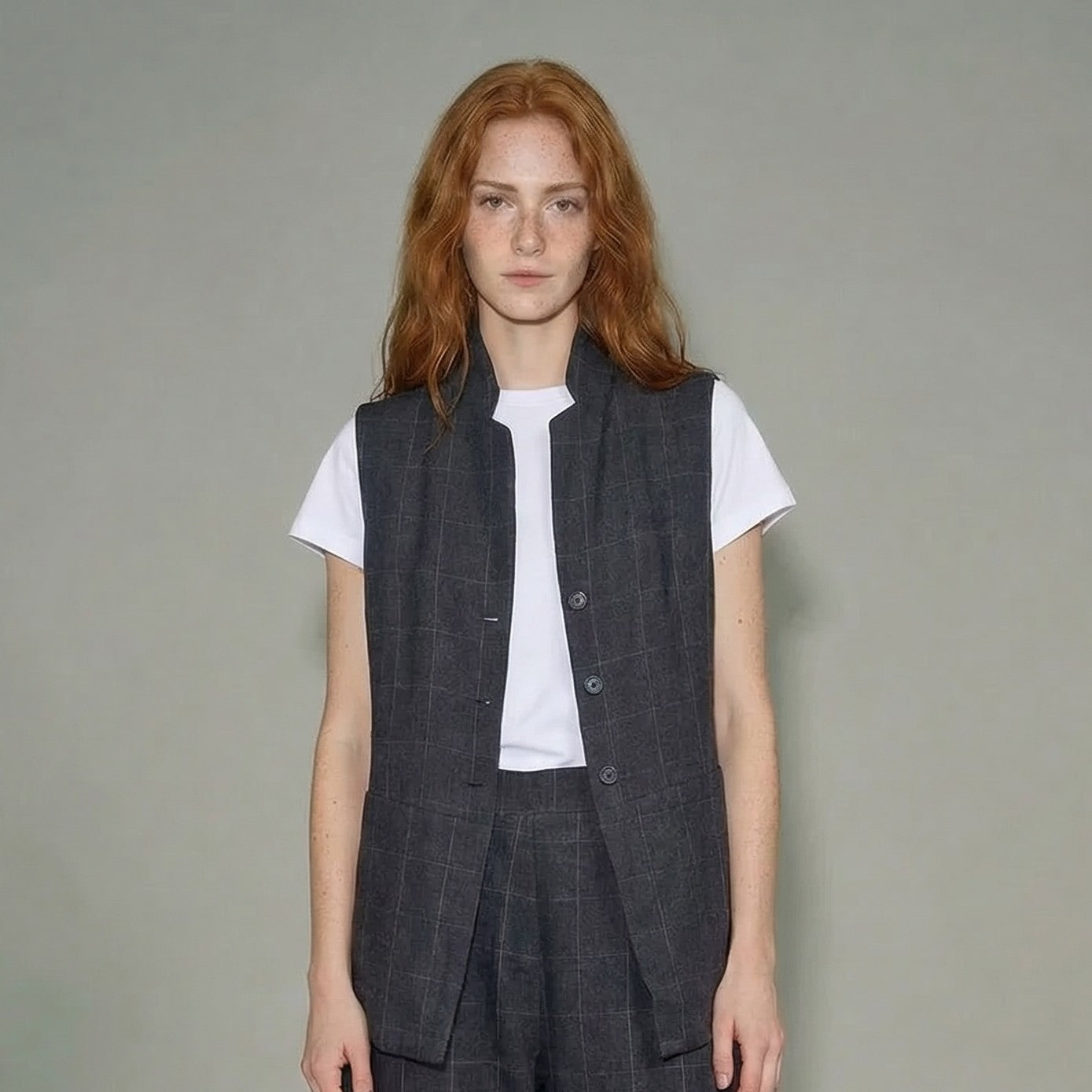 Checked linen waistcoat.