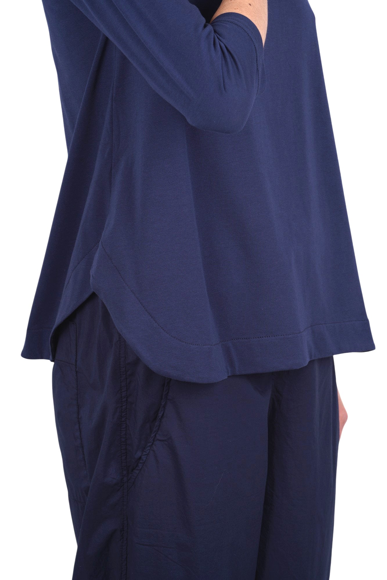 Maniche a tre quarti aderenti.