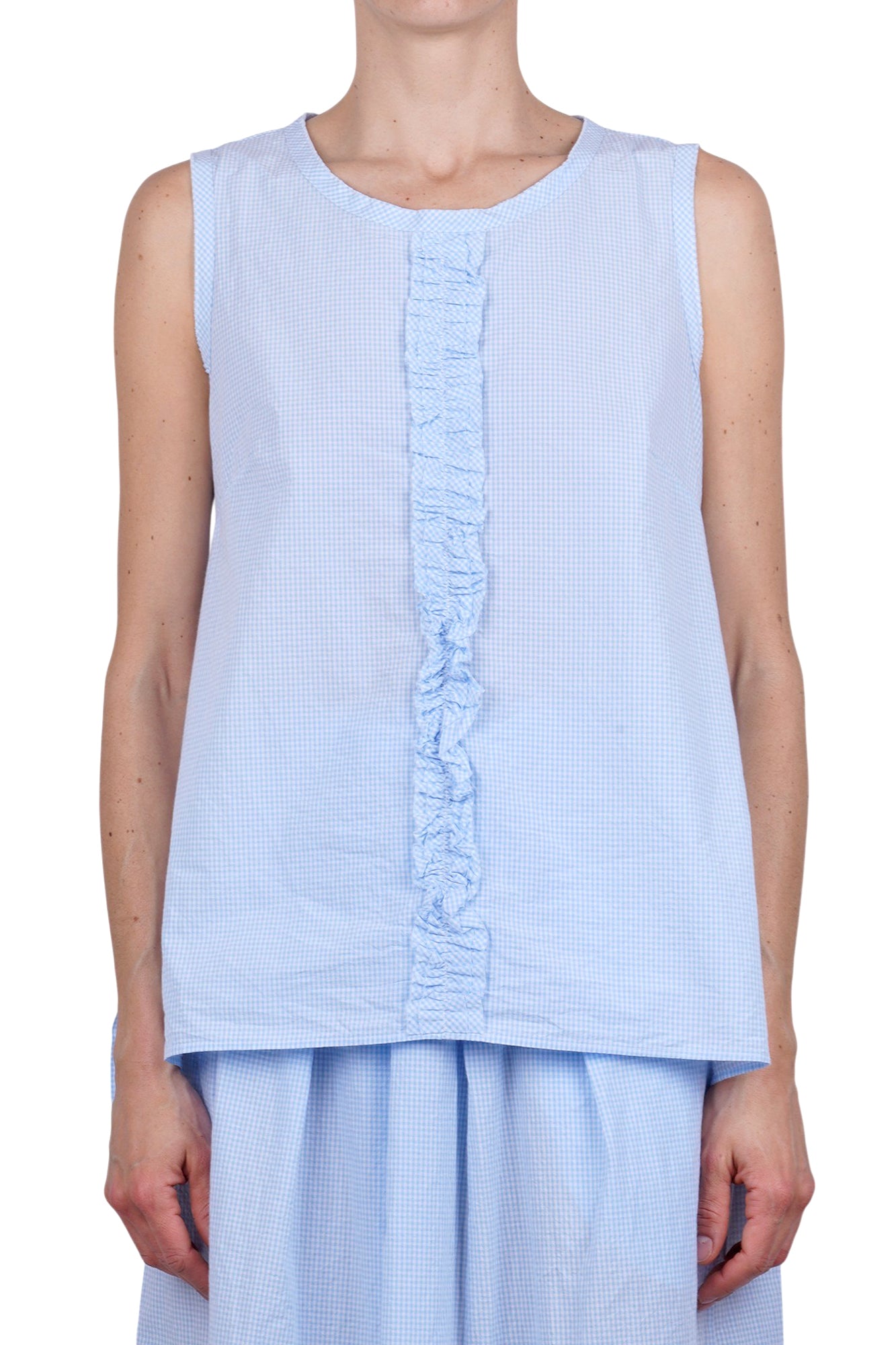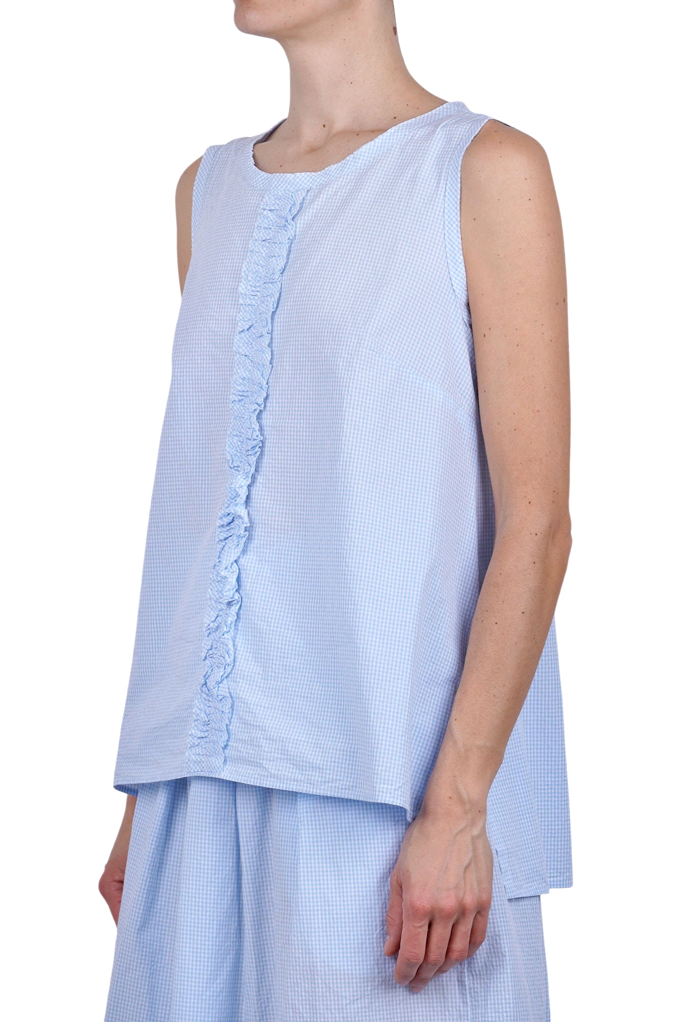 Top Ora a quadretti con ruches.