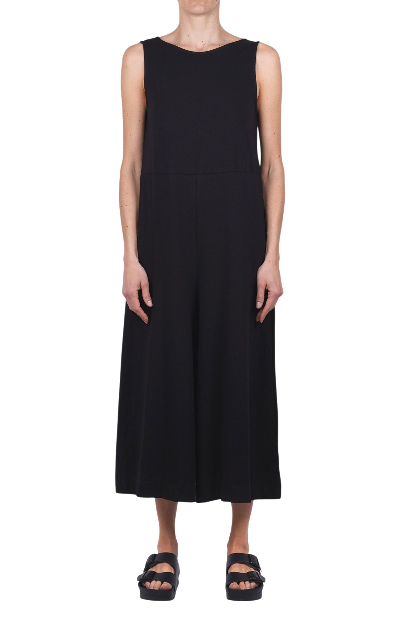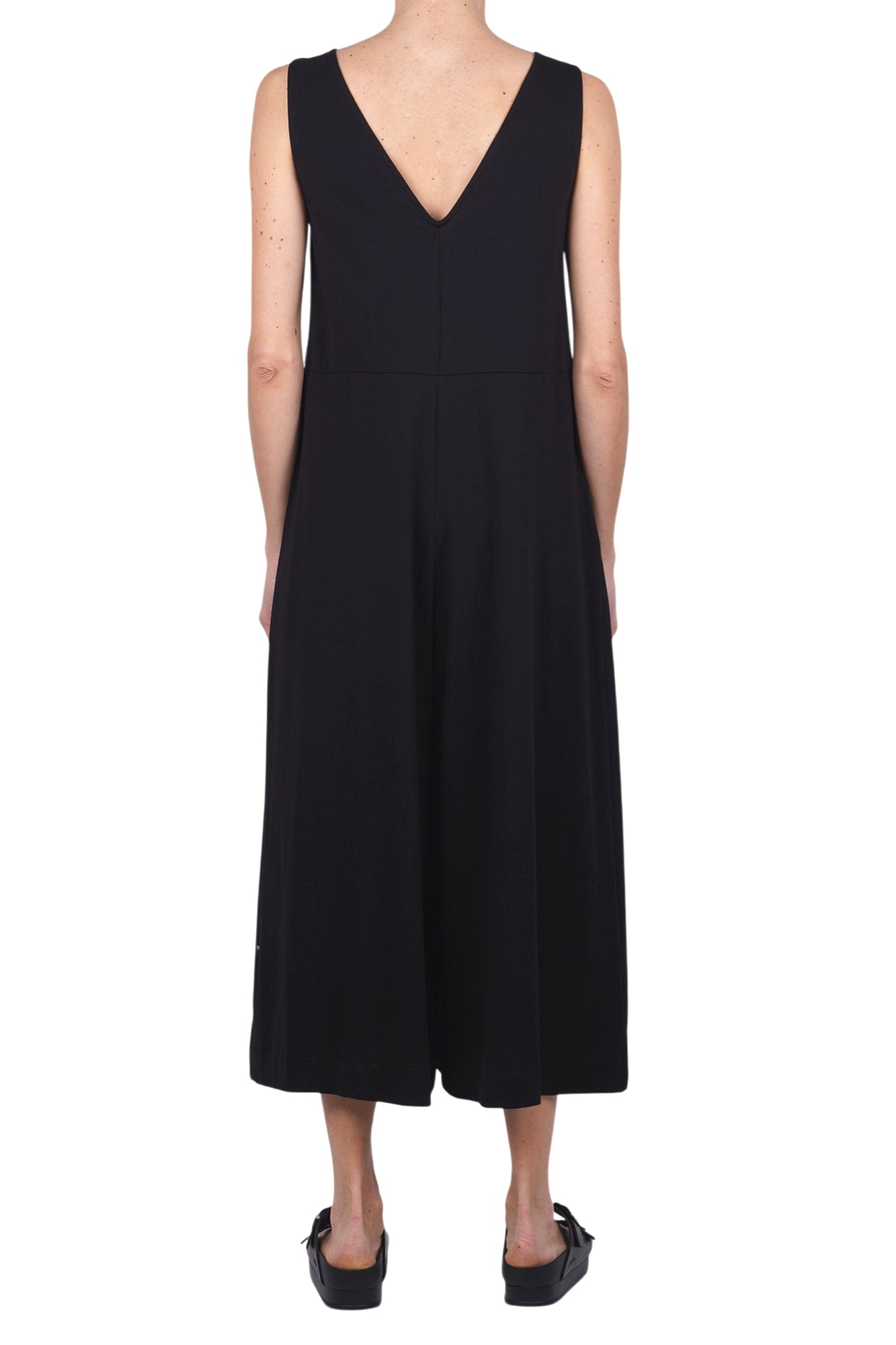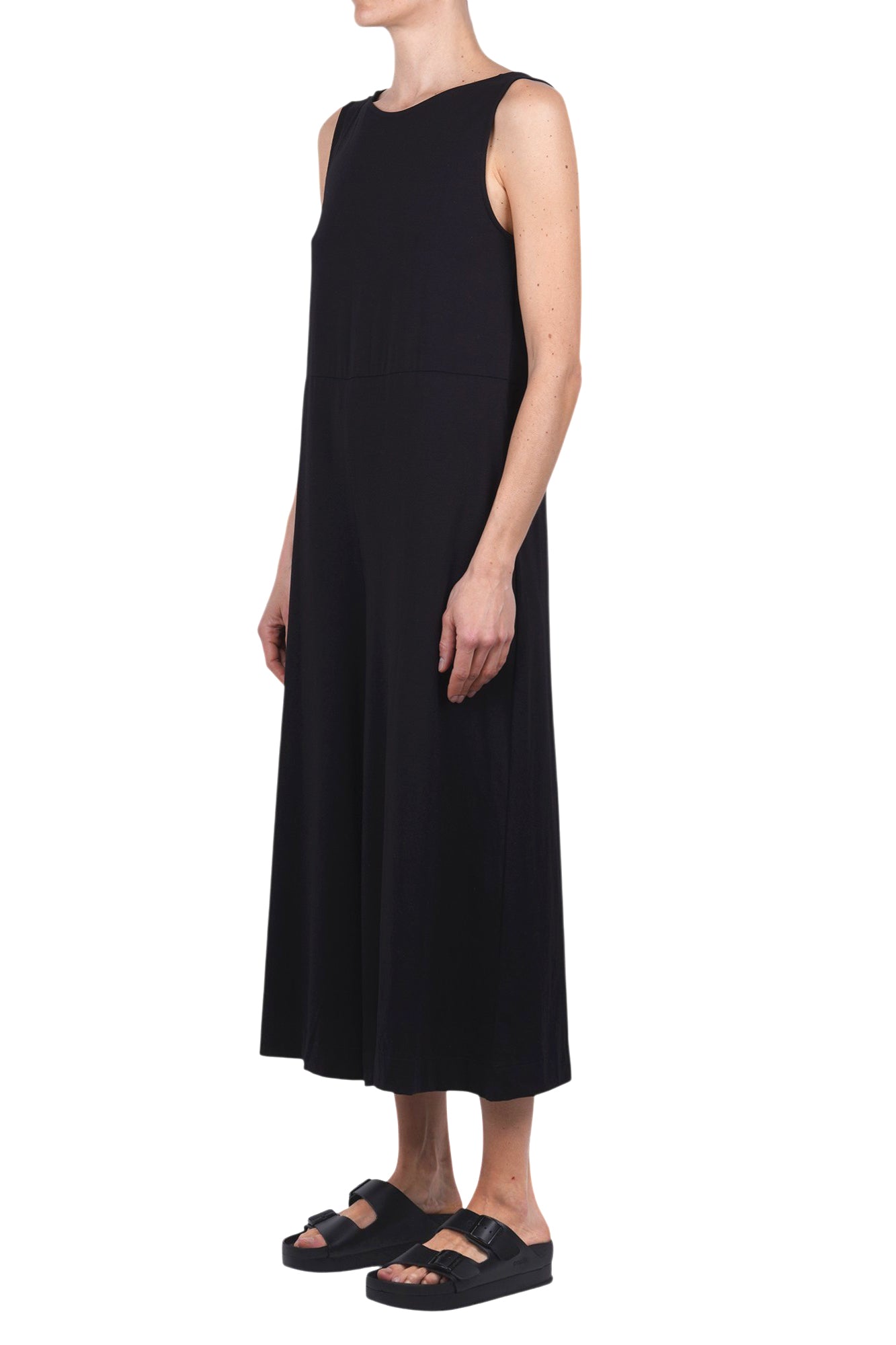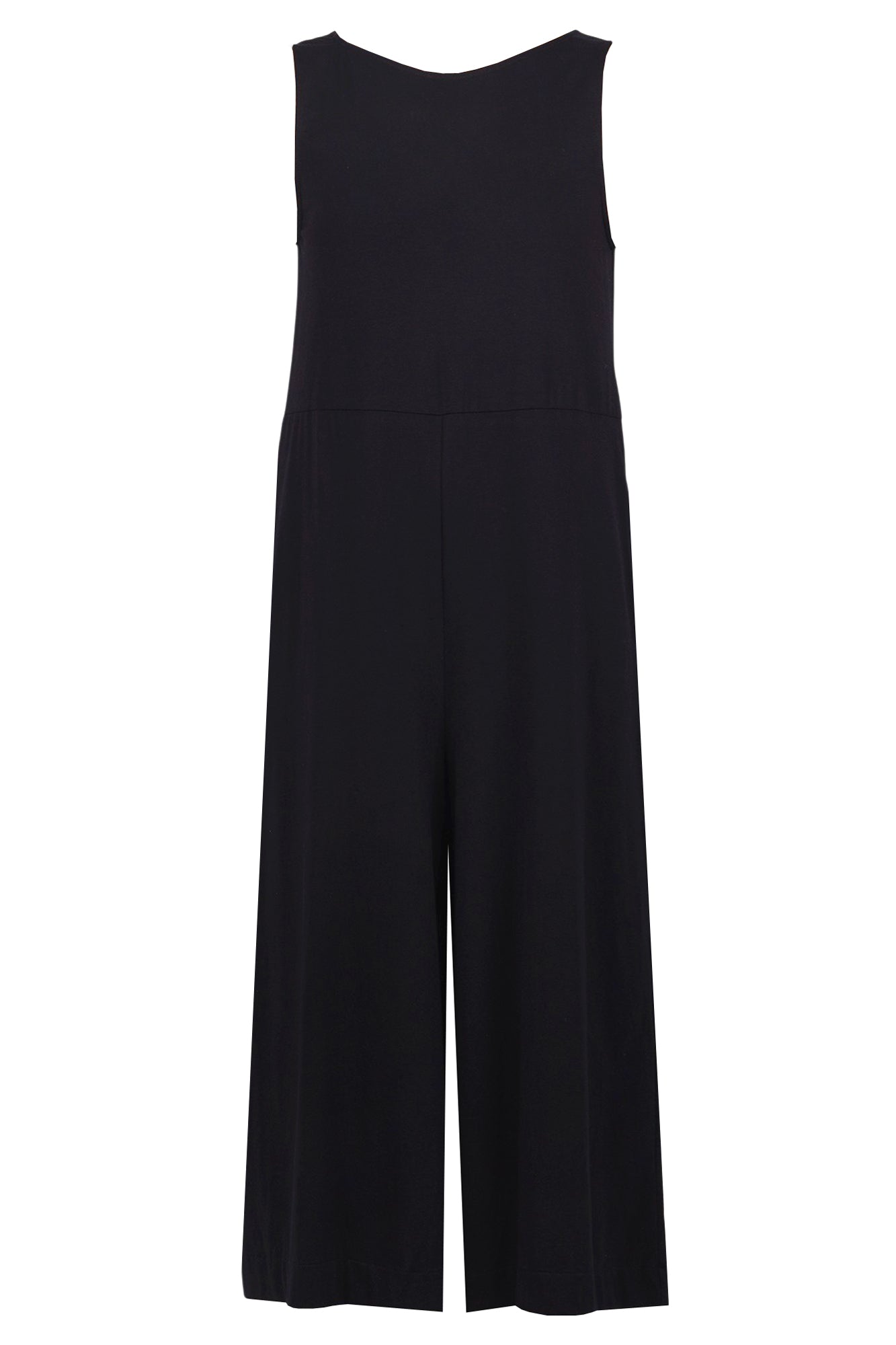 Fineu Tizminero Izmir jumpsuit. Sleeveless. Round neckline. Side pockets. Wide leg. Bottom width: 50 cm. Fabric composition: 93% cotton; 7% elastane. Fit: wide. Made in Italy. The model is wearing a Size XS and is 175 cm tall. A versatile and comfortable piece, perfect for a casual chic look.