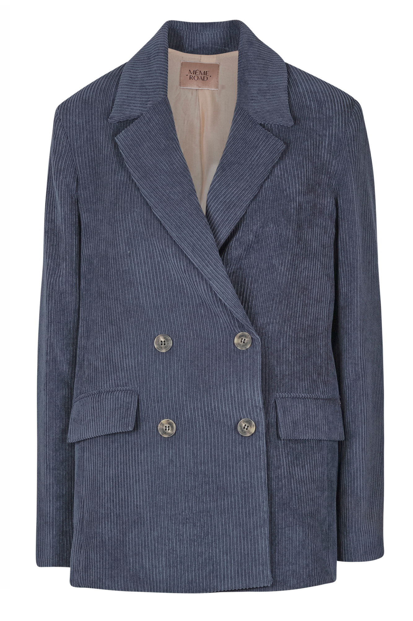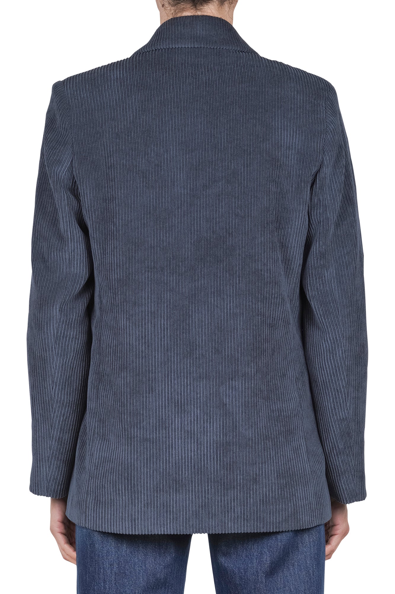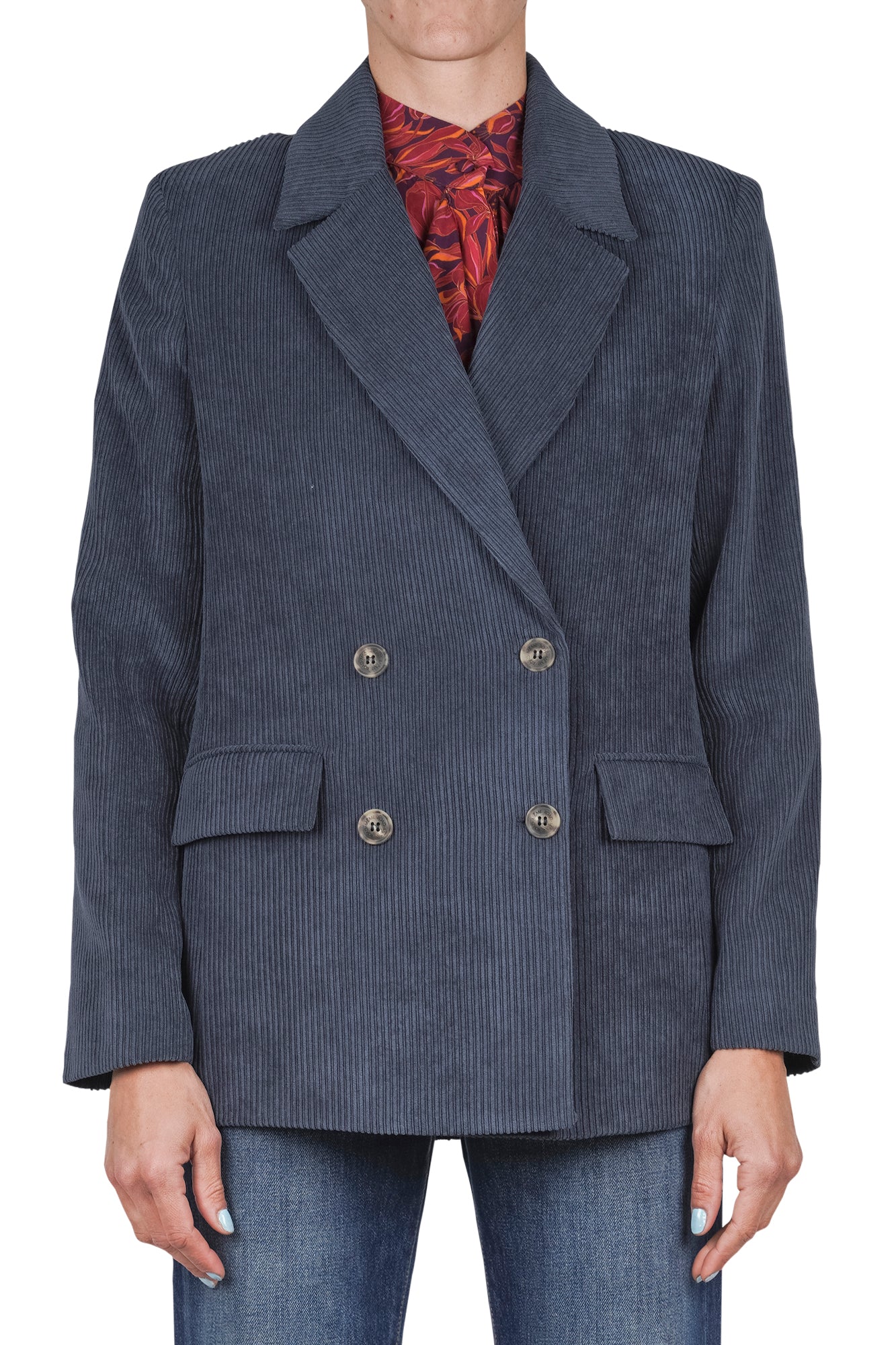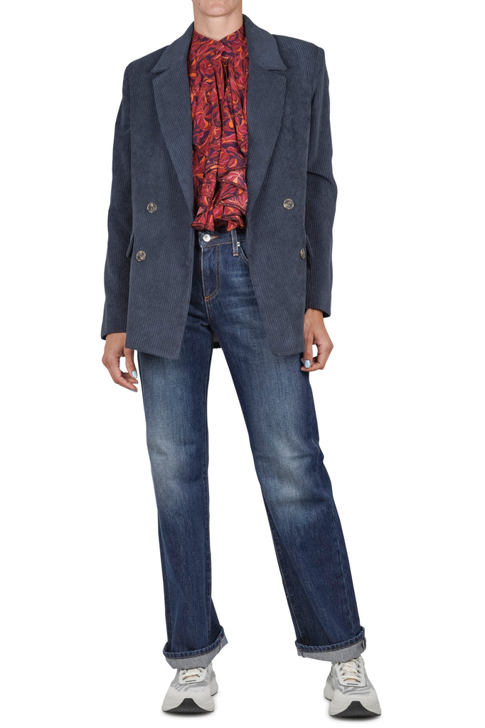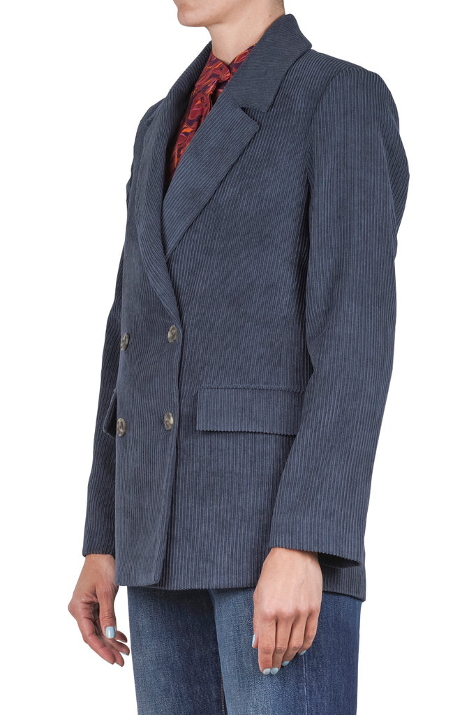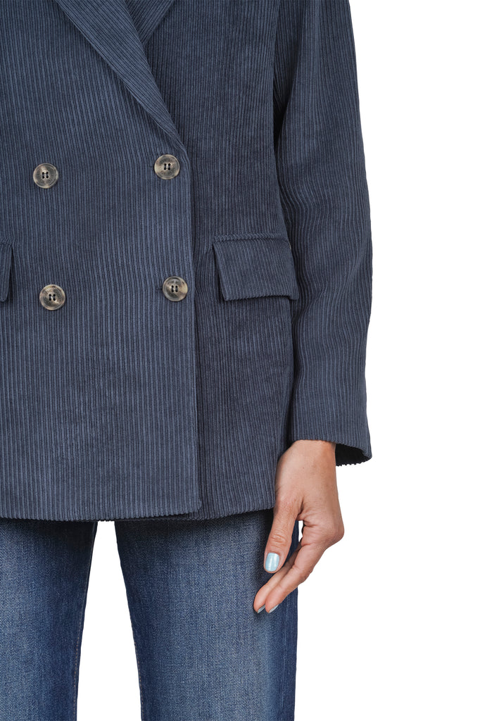 Double-breasted corduroy blazer.